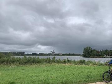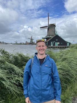 The next morning we were on a mission to rent bikes to trek out of the city to the village of Zaandam to see windmills- a very Dutch experience for sure! I was a nervous wreck peddling in Amsterdam but once we got out into the smaller suburbs and quaint villages and then into the parks I calmed down and was able to enjoy the sights. The wind was fierce (not quite sure why I was surprised by this since it is advantageous to build a windmill in an area that experiences wind) which made the ride feel hard but the sights were well worth it once we got there. We had a quick picnic lunch and walked around the windmills for a bit before venturing back. This time we took a more direct route and it was easier since the wind was at our backs. We had to take a free ferry both going and coming and it was entertaining to see the bikes outnumber the cars nearly 3:1. All told, our bike ride was about 25 miles and was definitely the longest bike ride I have ever done and my rear-end would remind me of that for the next few days, although it was a fantastic way to spend a day.