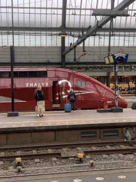 We hit up a little bar, getting a preview of the Belgian beers that we would get to experience shortly, then headed over to a tapas restaurant called “Joselito.” This has been Scott’s nickname for Cody since he was about five so it seemed as good a reason to choose a restaurant as any. We picked a few plates, and aside from me having a Spanish sausage explode hot grease all over my raincoat, had a nice meal. We then headed over to the train station, found the correct platform, boarded our train and then hurtled toward Belgium at about 200 mph, excited to see the land of the DePapes!
