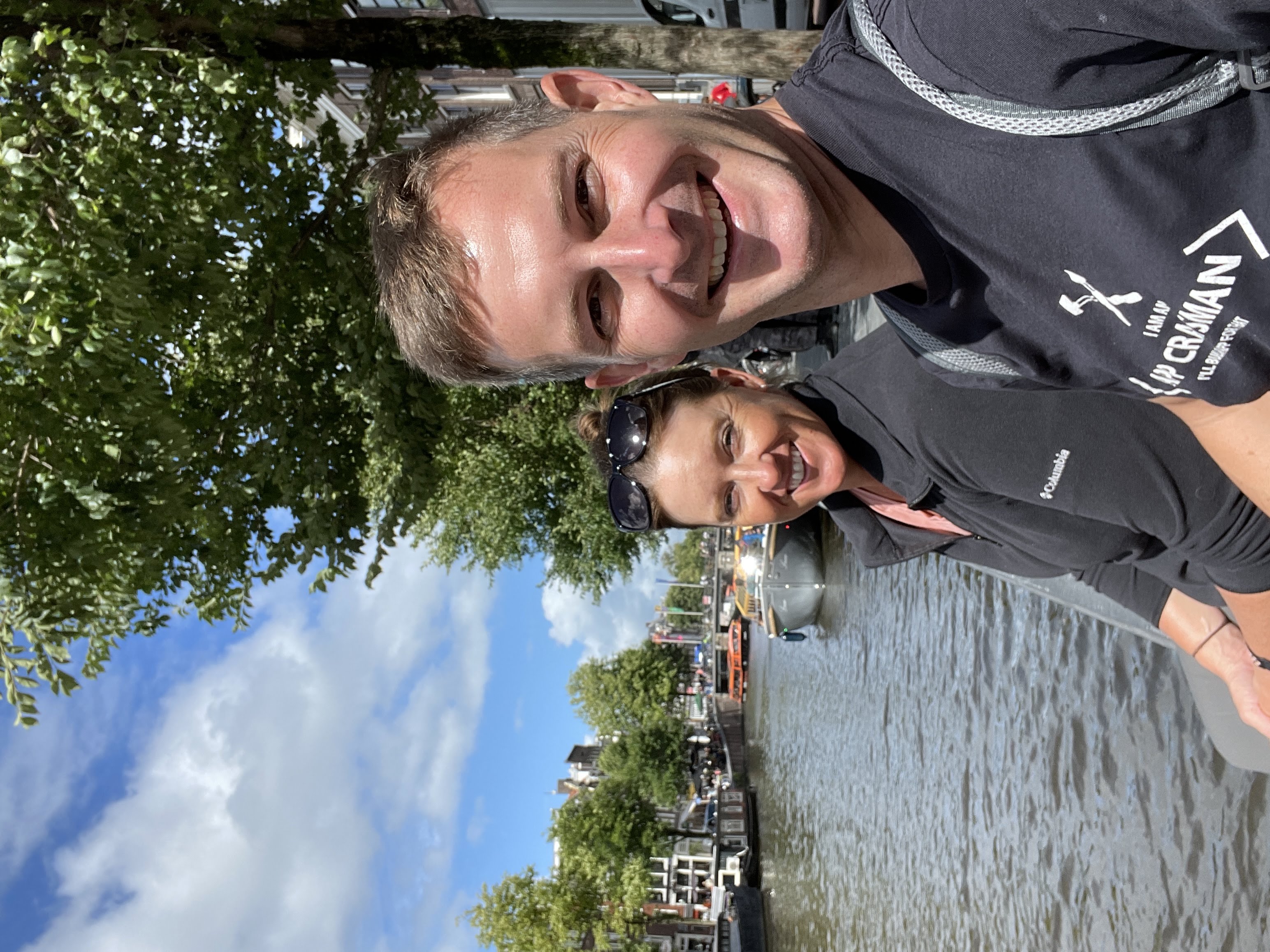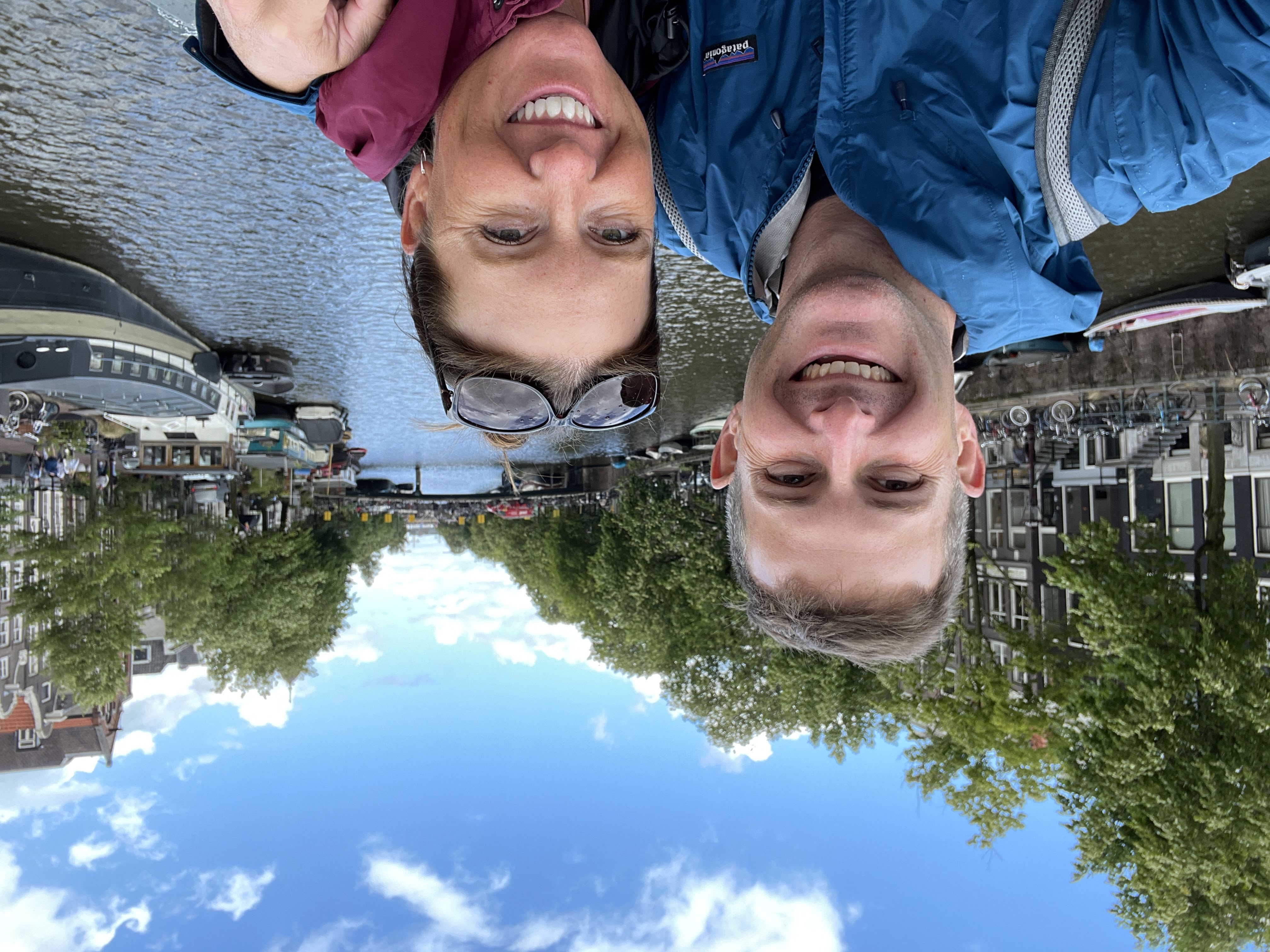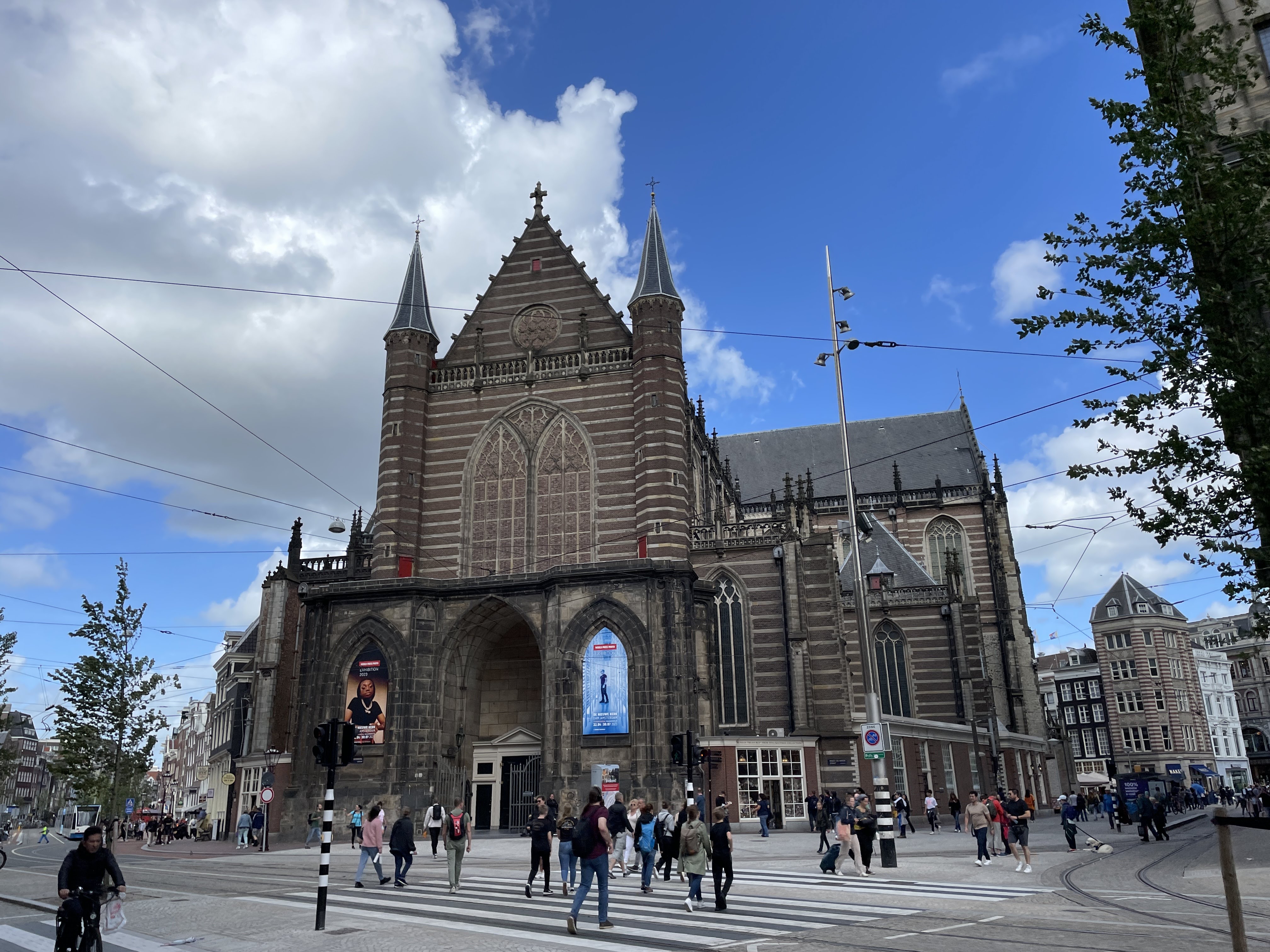 Having consumed the frites, we then wandered around the city. We explored many of the side streets and then made our way to the canals. We were amazed by the sheer amount of bicycles that we encountered- it seemed that the bike traffic may have outnumbered the foot traffic and you had to keep your head on a swivel to avoid veering into the path of speeding bikes hurtling at you. The episode of Ted Lasso that depicts a team trip to Amsterdam captures this chaos perfectly when Rebecca ends up in a canal dodging bikes! The bridges over each of the canals were decorated with flowers in pretty planters and were adorned with even more bicycles- those that were not currently being ridden around the city. We enjoyed seeing all of the different flavors and styles of houseboats docked along the canals and sat for a bit and watched the boat traffic inside the canals- its own little highway.