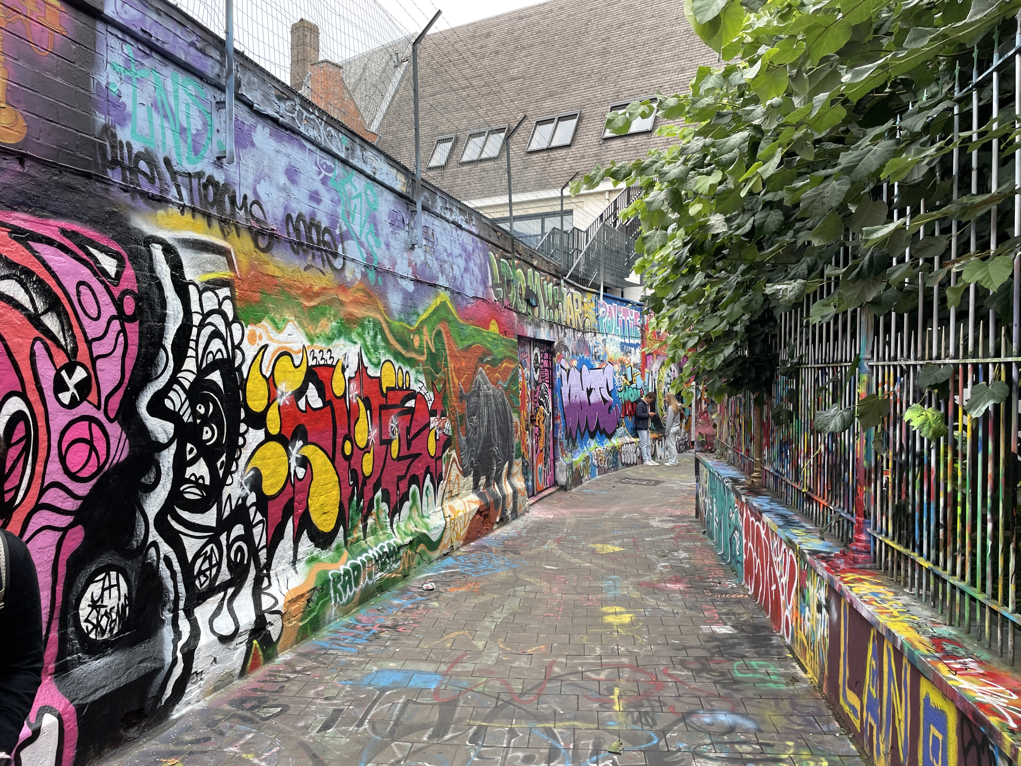 Our apartment looked directly down on an interesting Ghent feature: Graffiti Street, so that was our first stop. Graffiti Street is a short alleyway where graffiti is both allowed and encouraged and the only rule that applies is the “rule of the spray can” which evidently means you shouldn’t paint (paint? Or would it be draw? Maybe spray?) over works that are better than yours and don’t be noisy late at night and disrupt the local residents. It was a wild thing to see and we enjoyed seeing the creativity and talent of some of the artists. The paint that has accrued on the buildings in the alley since Graffitti Street was born in 1995 must have been close to an inch thick.