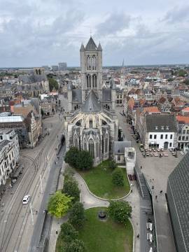 The next stop was to see the Ghent Belfry, a UNESCO World Heritage site. It was built around 1300 and is one of the three tall buildings that gives old town Ghent its distinct look. Scott loves a chance to climb a tall tower so this was right up his alley- it is 91 meters tall. The view of the city was incredible at the top and well worth the steep climb. My favorite part of the tower tour was the iconic copper dragon that has protected the tower since its conception and on special occasions has breathed fire.