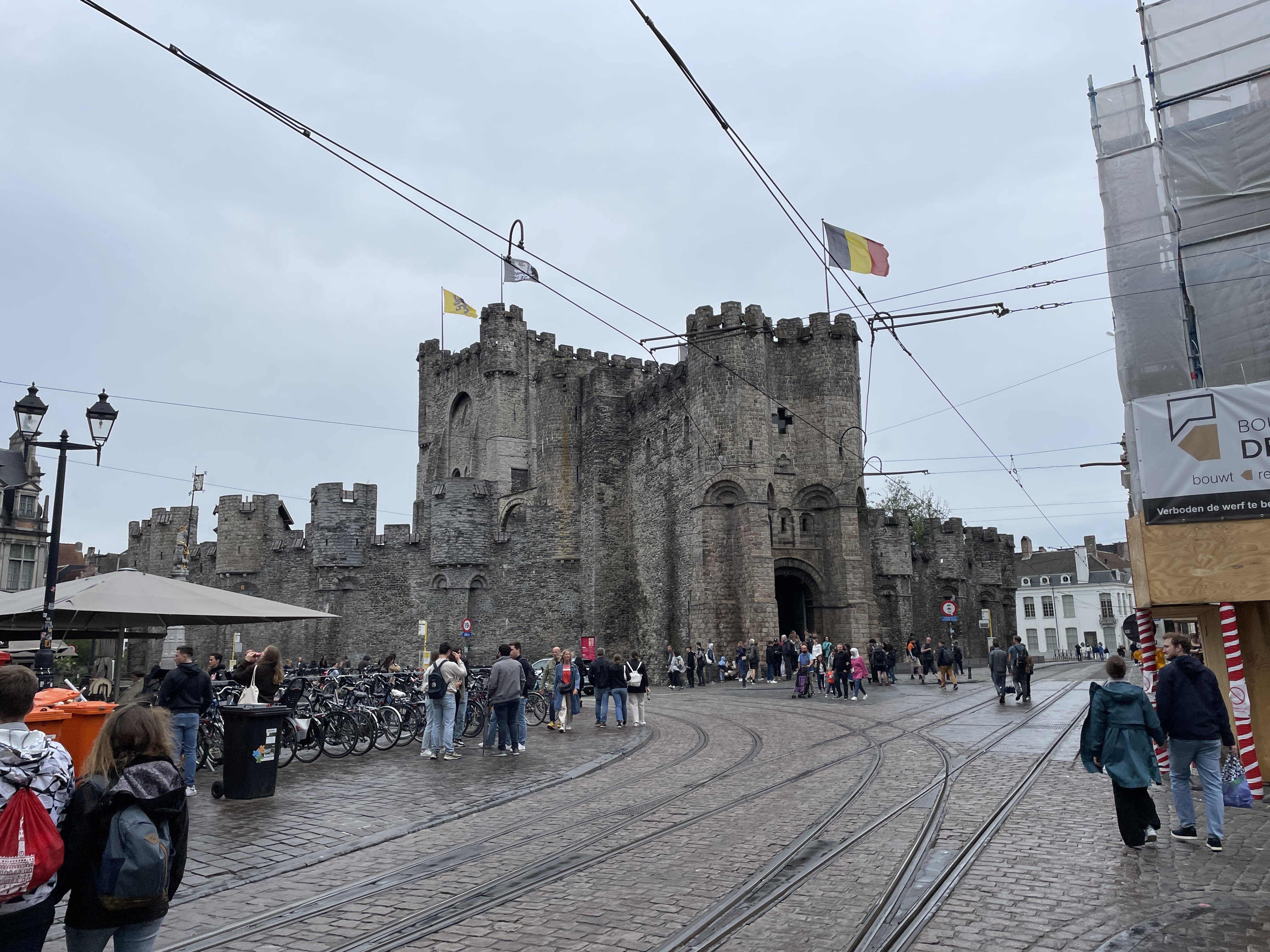 On the day of Sara and Joey’s wedding we had planned to see the sights and highlights of Ghent. We started our morning with the croissants we had bought at the market the day before (Scott had Nutella on his and I had the cheese we had bought) and then ventured out and about.