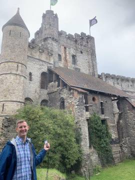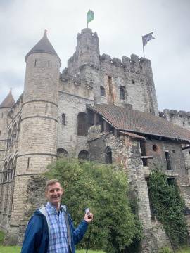 The nearly 850 year old Gravensteen Castle was next and I don’t know that I have ever seen Scott quite as excited as when he was touring the castle. As an aside, the in-person line for tickets was a mile long. Fortunately, Scott purchased cellular data service that morning, allowing us to purchase tickets online. The eSIM was about $25 and enabled us to have data access throughout the EU - a godsend from the navigation perspective. Unfortunately, it cut down significantly on the prospects of ending up at another beach town by mistake. The tour included a very well done, highly engaging and slightly cheeky audio tour which informed us of the history of the medieval castle and highlighted interesting features. It was when we were in the dungeon portion of the castle tour that Scott turned to me and with a straight face said he thinks he could have been an executioner. I’m sorry, what? Seeing the horrified look on my face he clarified it by explaining that he didn’t think that he could be the one to sentence someone to death but if he had been hired to be the guillotine guy then he thinks he could do his job without any tears or sniffles. So that happened. We thoroughly enjoyed the tour and must have taken one thousand pictures- my favorite one is of a sign asking visitors to kindly refrain from using the medieval latrine that emptied directly down into the Lys river below. (Side note: Scott likes to give things nicknames and his pet name for the Gravensteen Castle was Ass-grabin-steen and he used it every chance he could. I think he is actually a middle school aged boy and not an adult.)