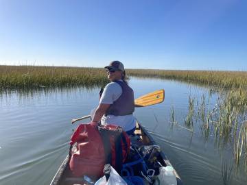We traded out our usual whitewater boats in favor of a canoe on a late October weekend for an enjoyable paddle out to Capers Island Heritage Preserve, a barrier island off the coast of the South Carolina Lowcountry. My cousin Becky Shannon was kind enough to host us the night before since she lives in West Ashley, only about a half hour from where we would be launching.