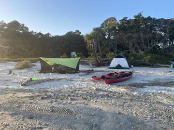 So only the barest of necessities got to come along and it still amounted to a whole lot of gear that still had to fit into the boats. Joey takes the cake on packing though because he managed to bring an entire bundle of firewood in his sea kayak.