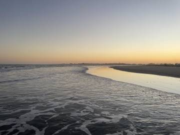 Once we got close to the island the breaking waves of the Atlantic ocean greeted us. Joey was able to keep paddling through the breakers in his sea kayak but Scott and I opted to get out of our canoe and “leash walk” our canoe along the shore until we were closer to the area where we would be camping to avoid the risk of getting flipped and swamped. We made it to the designated camping part of the island and pulled our boats up onto the beach (they were heavier than you would think considering how little we were able to bring). It was time to explore and set up camp!