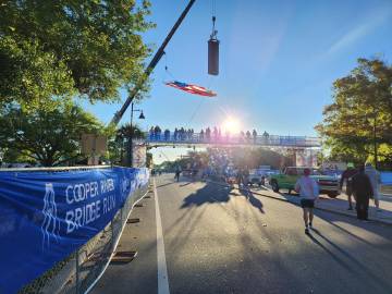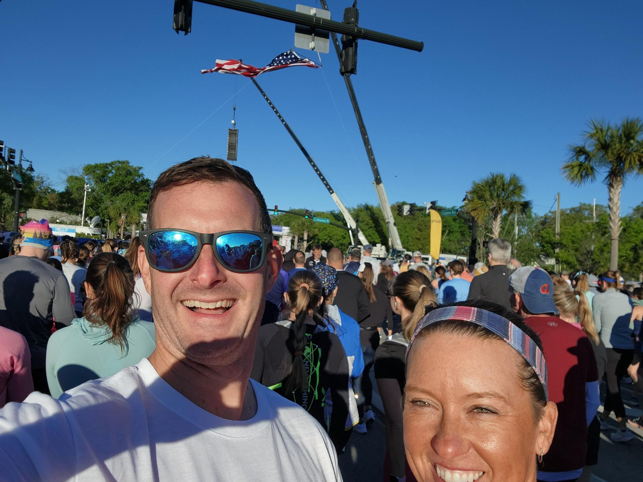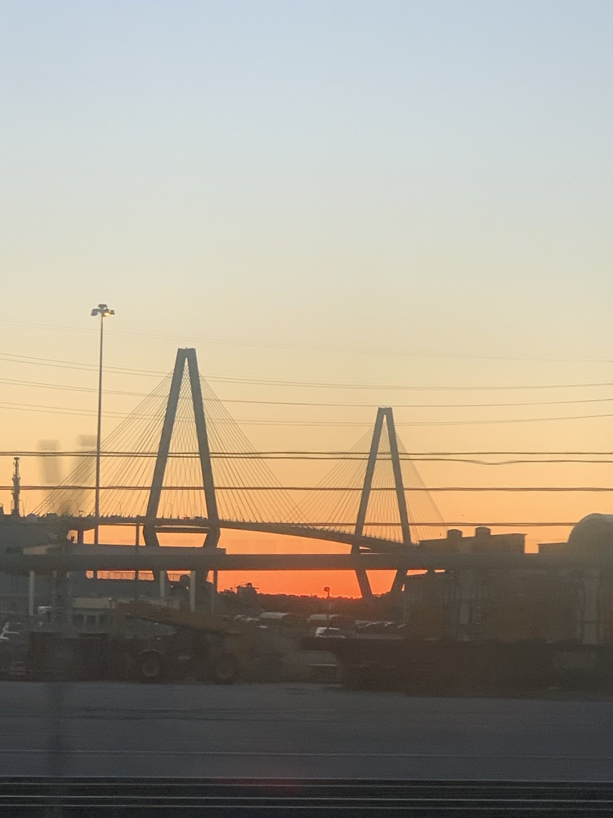 Scott and I put on our running shoes before sunrise on a chilly morning in early April and got dropped off in downtown Charleston to board a bus that would take us across the river and to the starting corrals in Mount Pleasant to que up with 26,736 other excited runners for the 47th annual Cooper River Bridge 10k Run.