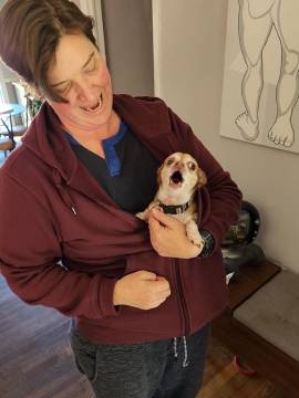 We lounged around the rest of the day, snacked on some of the junk food and beer I had bought for the occasion, and dodged attacks from PJ who is always scanning the room for a bare and unattended ankle to chomp. Becky took us to Frothy Beard again for pizza (and beer for me) and we devoured it. I think we were in bed by 8 that night.