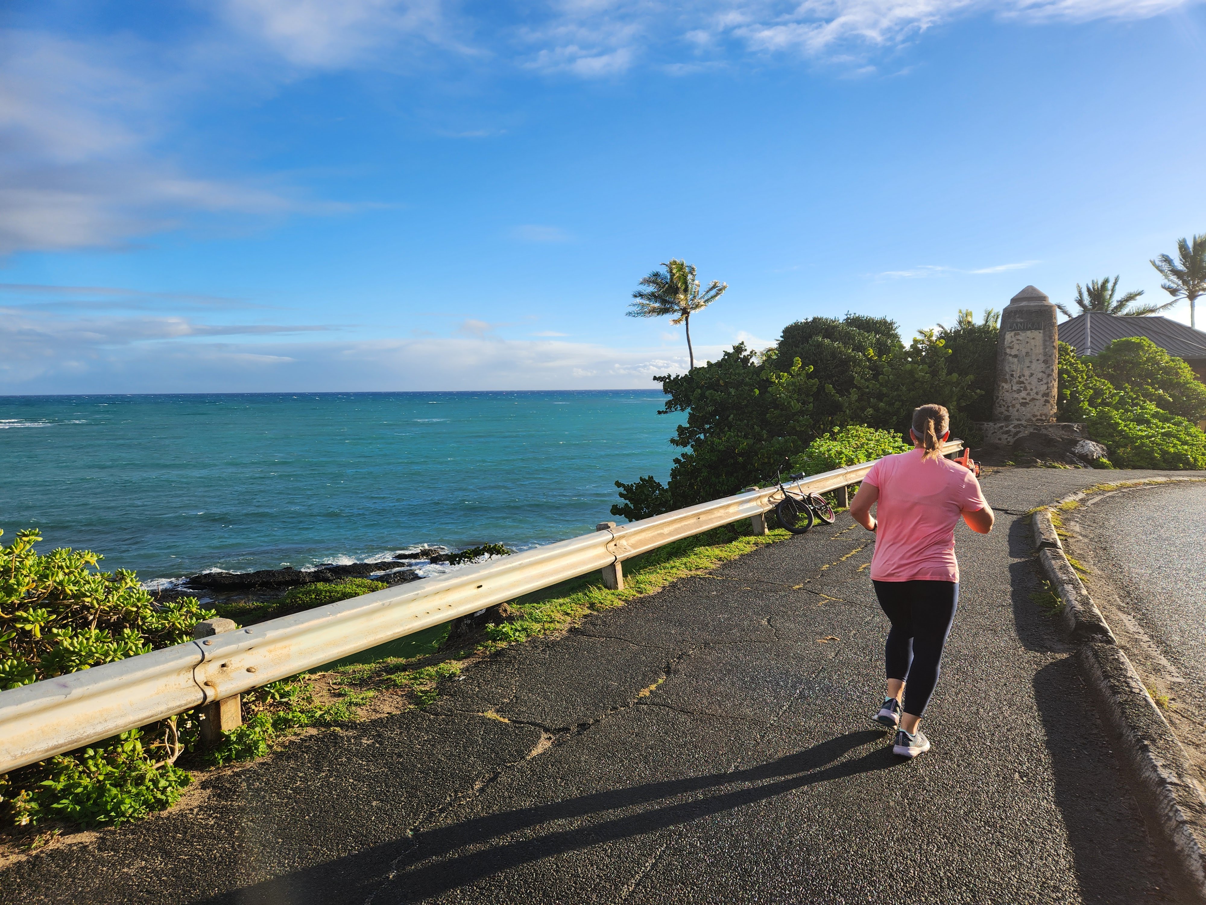 That morning Scott and I changed up our beach walk habit slightly and went for a run to Kailua Beach instead. I had brought running gear because we were signed up for the Beaufort Turkey Trot on Thanksgiving and knew that I had to run while we were in Oahu, otherwise I’d get to gobble until I wobbled… right into a face plant on the 5k route, and not get to eat turkey and all that. It was an enjoyable route to run and we were treated to views of Kailua Bay and its beach along the way.