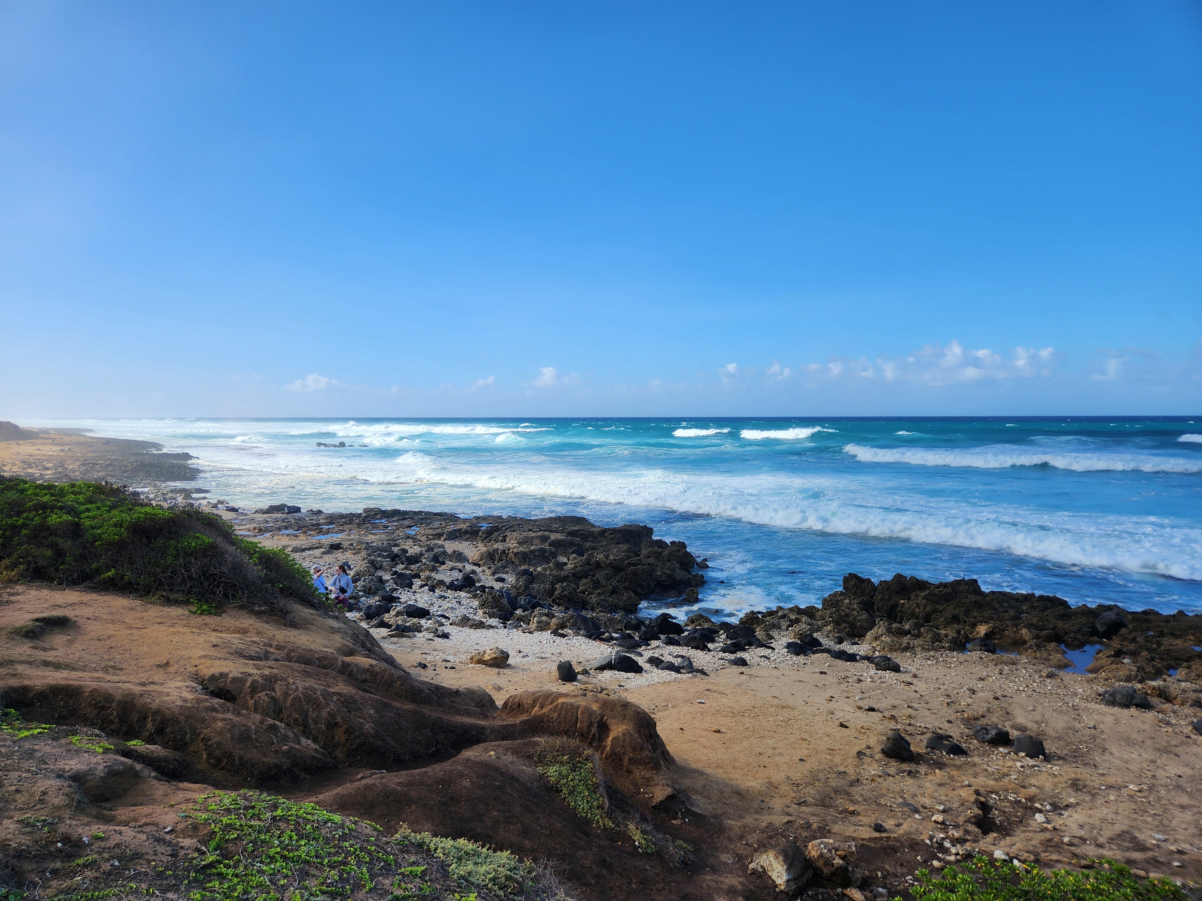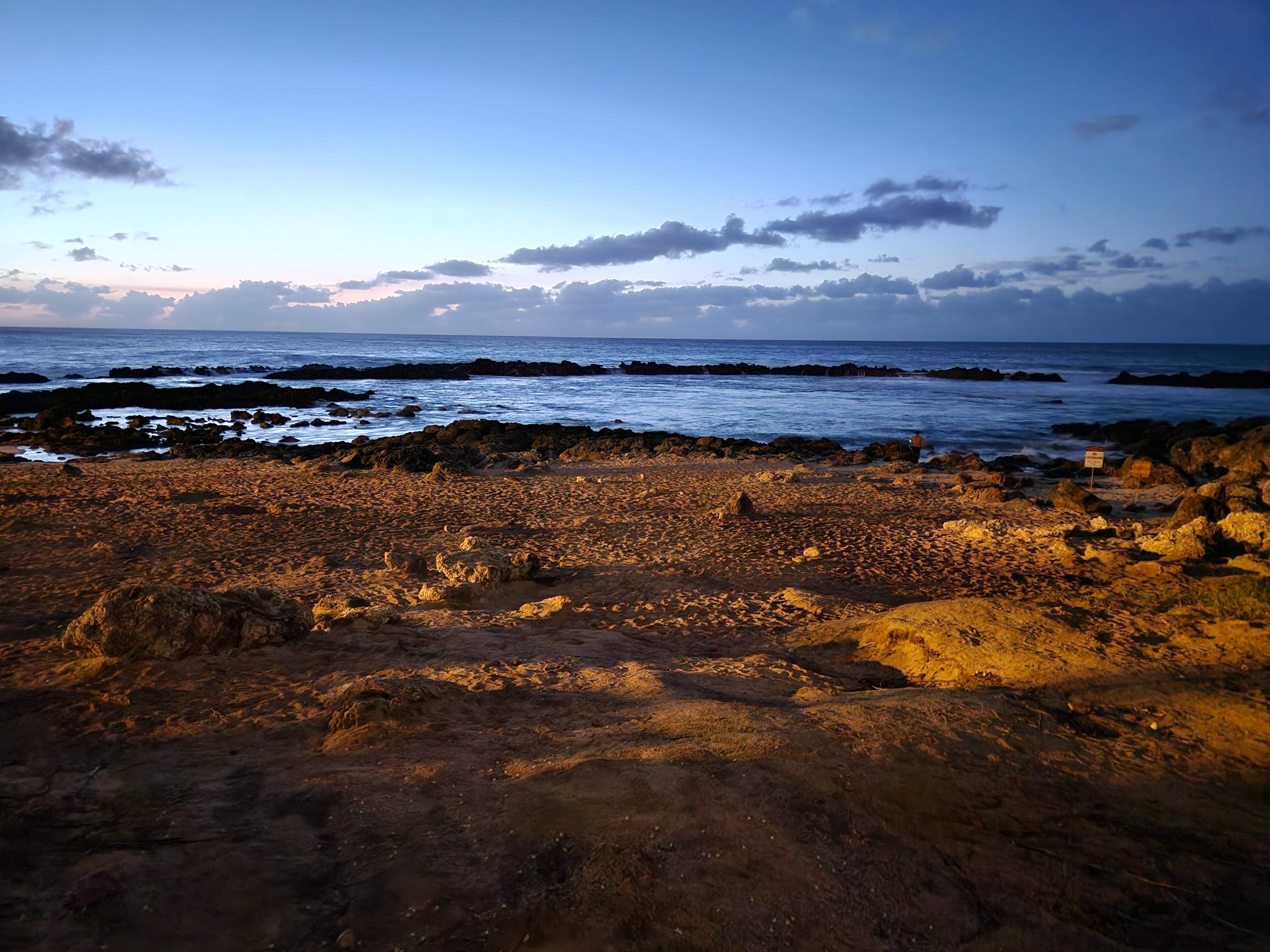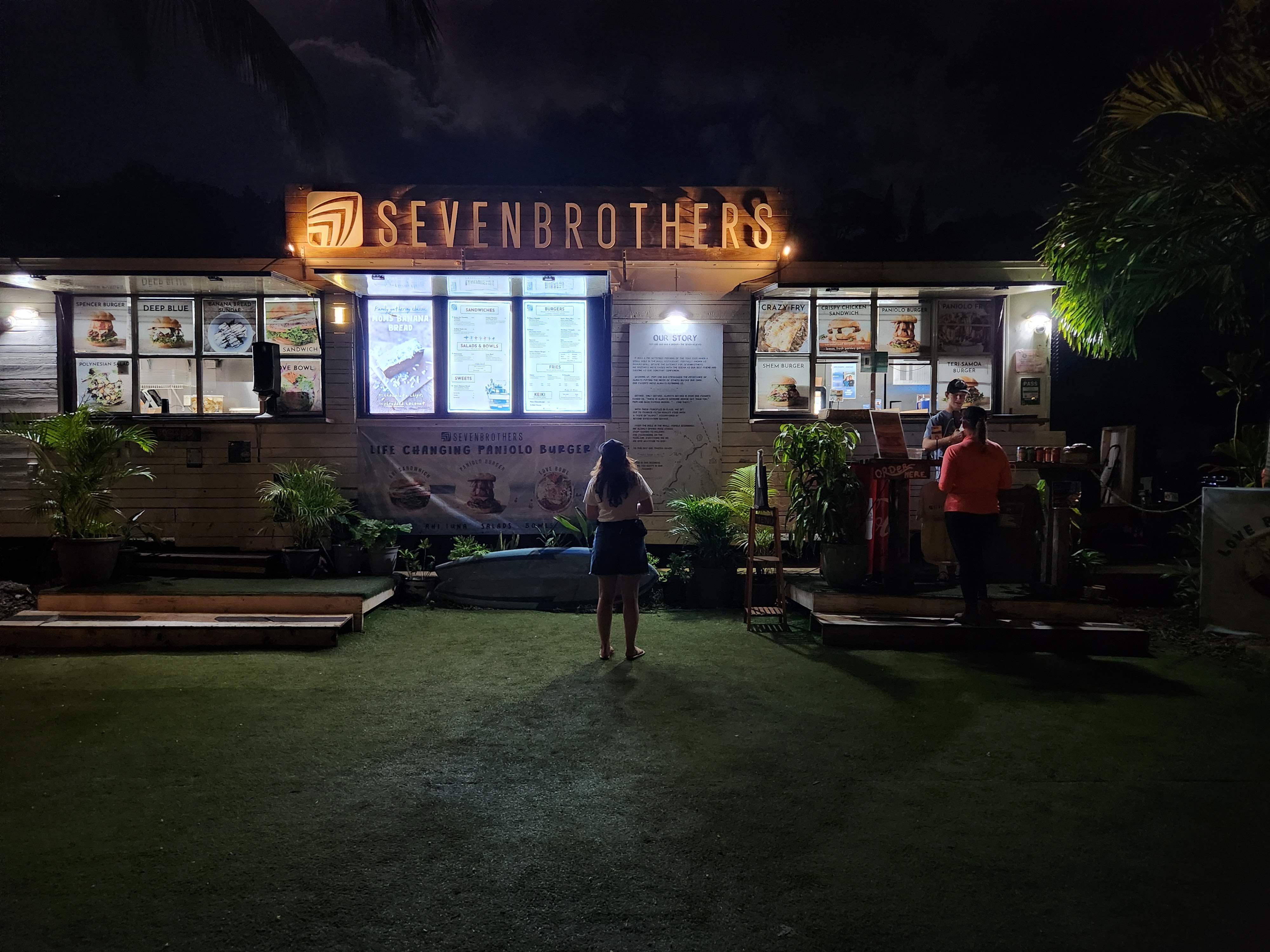 Scott, my faithful Uber driver, picked me up when I was done for the day and we headed in search of dinner. We stopped for takeout at a place called Seven Brothers across from Shark’s Cove. We walked across the street and had our dinner sitting on a brick wall overlooking the beach at the snorkeling spot (which was closed that day due to dangerous surf) and while we were eating we noticed some people on the beach playing with fire. Literally. A local fire dancing troupe were taking turns twirling fire sticks and “poi” (poi means “ball on a string”) which was mesmerizing to watch and was right up Scott’s alley. When we had watched our fill of fire dancing we headed back to Kailua, and as had become the norm, fell right into bed.