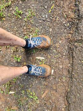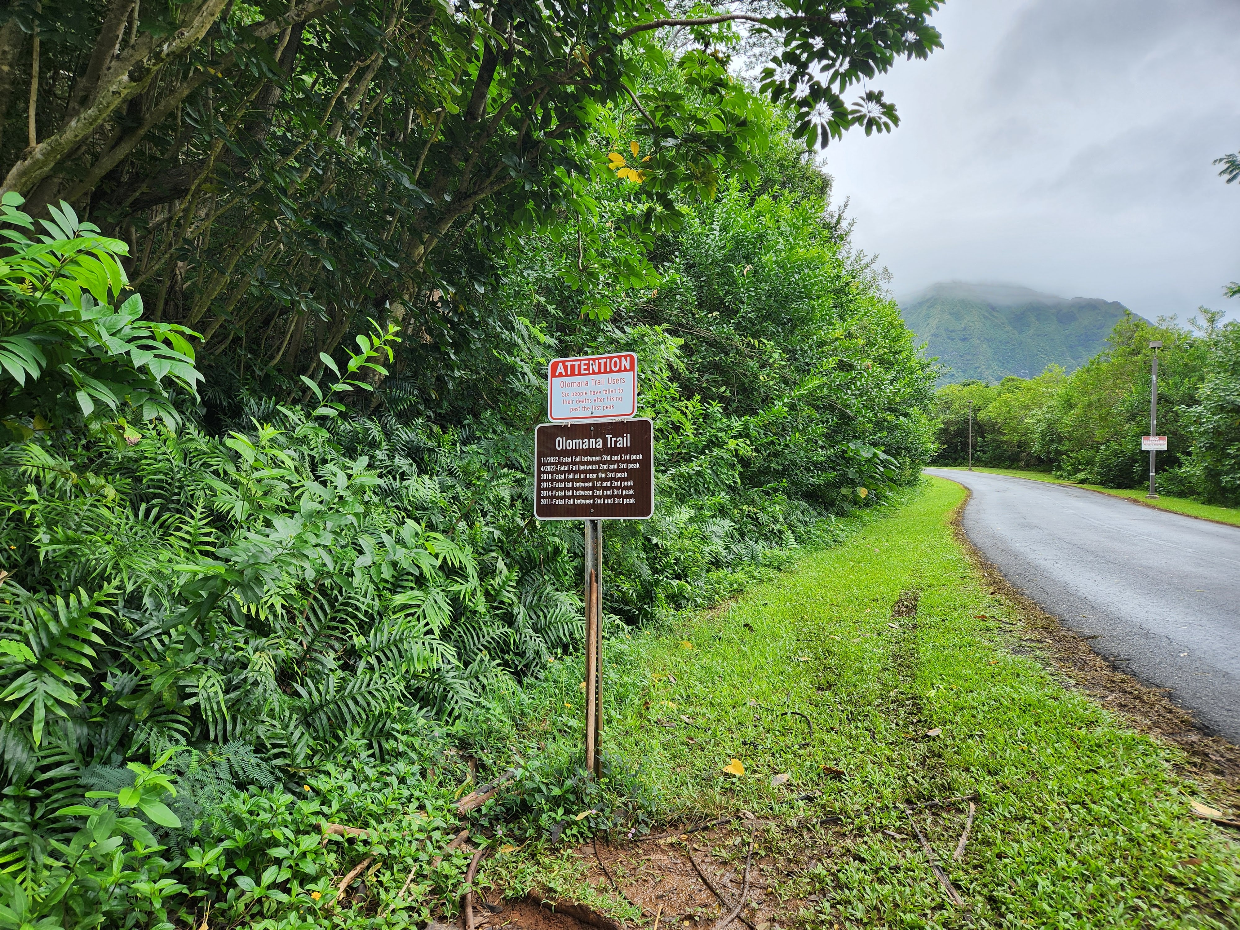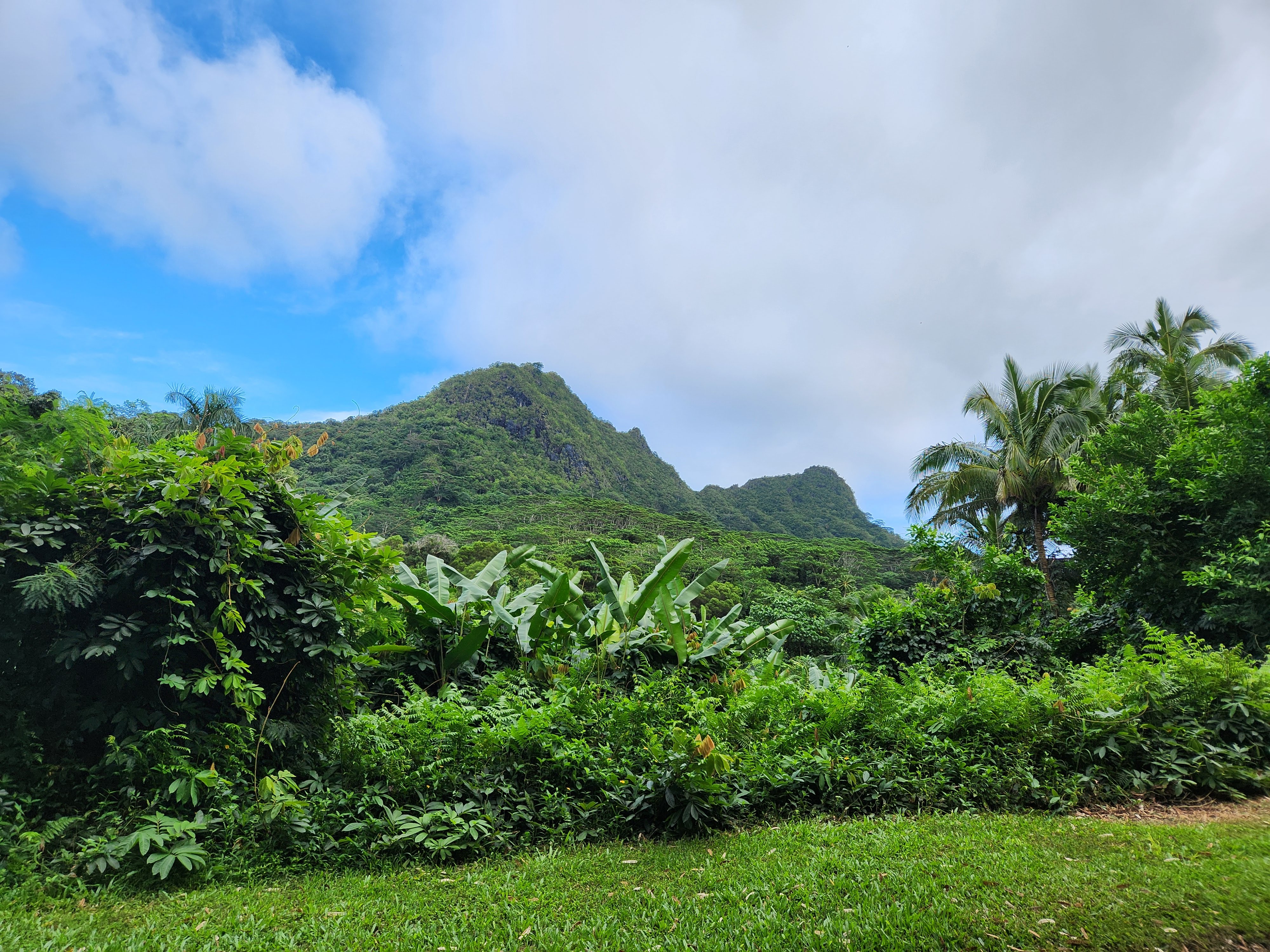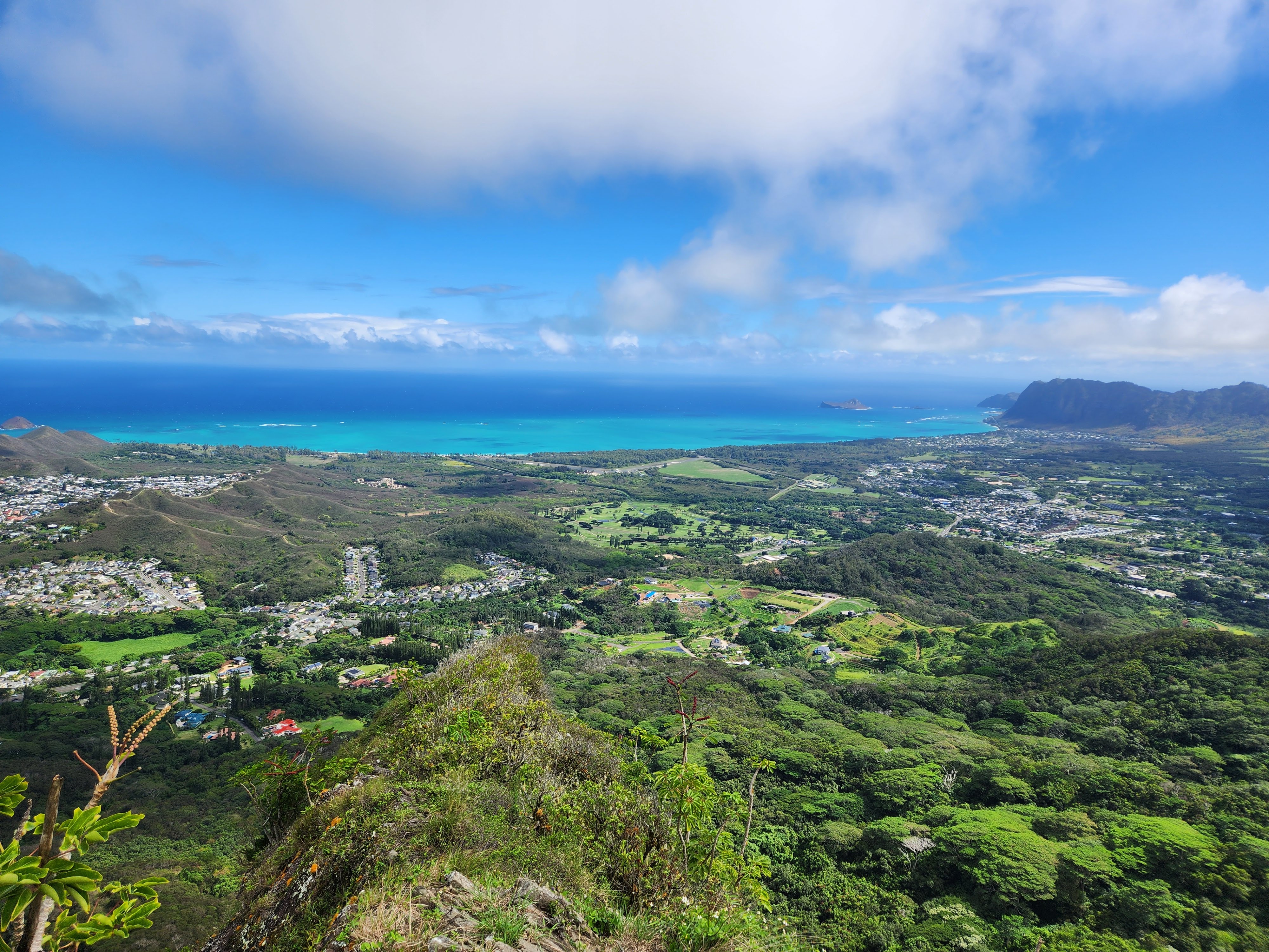 On the first day of testing Scott planned to hike Mount Olomana or Three Peaks (the hike that the Airbnb owner had warned him about) and it turns out that its trailhead was less than a half mile from Maunawili Farms. In fact, I had a view of it from the farm while Karen and I were testing. He both survived and enjoyed the hike and thankfully only did the first two peaks, avoiding the third and most dangerous. It was fairly steep and slick with mud (so much that when he got back to the Airbnb he got into the shower fully clothed to wash off his clothes!) and there were permanently affixed ropes along the way to help navigate the trails, but the spectacular panoramic view of Oahu at the top made it worth it. At the second peak he was even able to hang his hammock and enjoy a siesta atop the mountain.