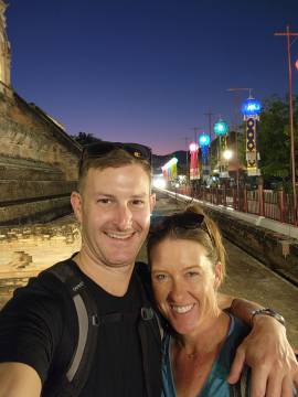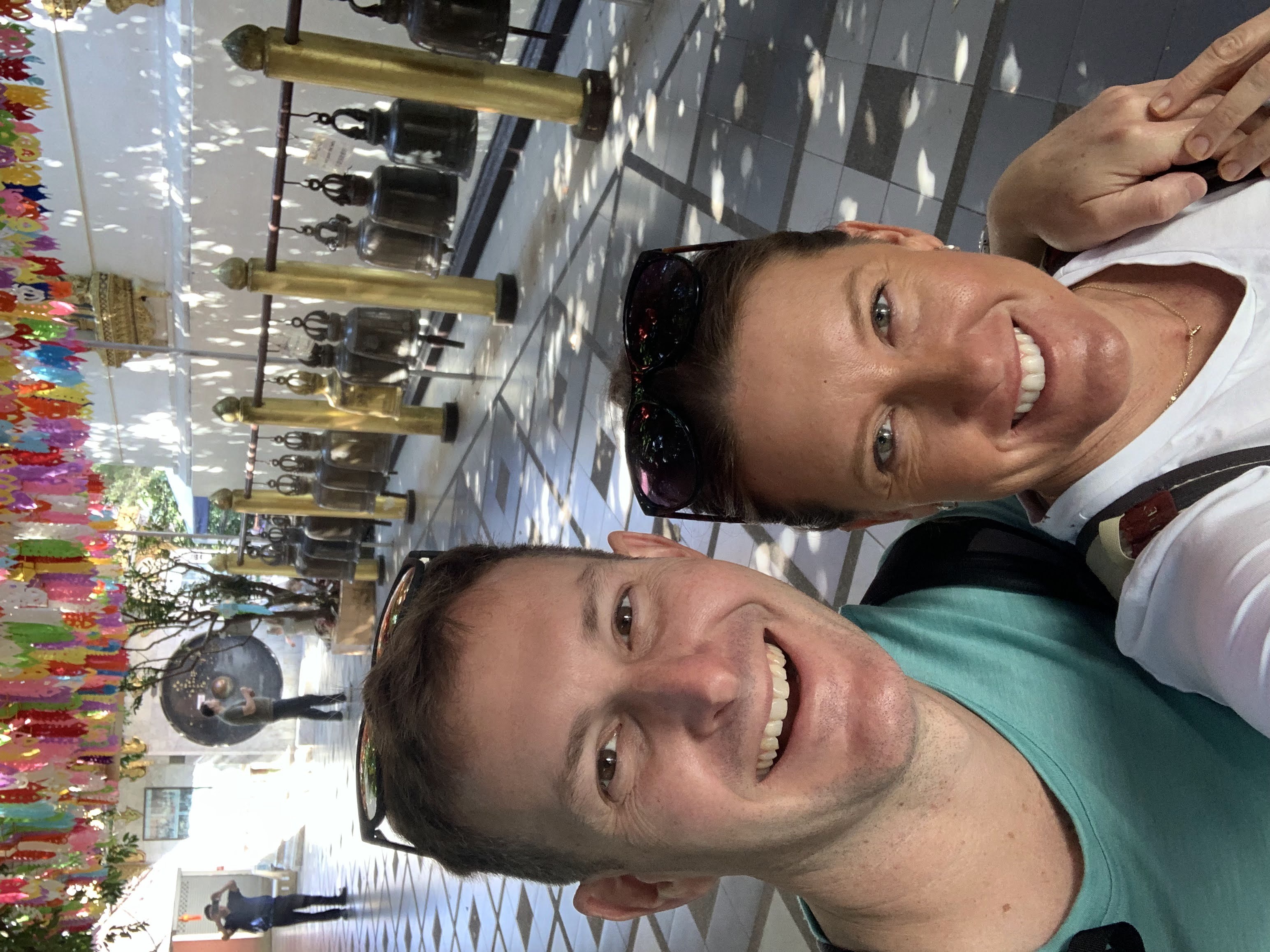 Funny story that we will refer to as The Thai Sock Incident: The first day that we had arrived in Chiang Mai, I had sent my laundry out to be done, orchestrated through the hotel front desk. I had asked Scott if he wanted any of his clothes washed and he had reluctantly contributed a pair of shorts and a pair of Darn Tough merino wool socks. His reluctance is an important detail here, as is the brand of socks; they cost about $20/pair. Another pertinent detail is that he had strategically only brought two pairs of socks on the trip. So, the laundry came back the next day, all nice and neatly folded. Except that Scott’s socks were missing. He became quite distressed and we went through it all to see if they had somehow gotten folded up with the other clothes. Nope. Scott immediately wanted an APB put out on the socks stat. This was not ok. I messaged the hotel manager to see if he would inquire with the laundry service and have them hunt them down. Somehow Scott was able to fall asleep that night, but he was NOT OK. The next morning as we were headed out on our adventure he went to touch base with the manager to get a sock location progress report. He even showed them a picture much like you would show someone a picture of your dog had it gone missing. The manager said that the laundry service looked but couldn’t find them. Unacceptable Scott said. Tell them to look again. Fast forward to a stressful day. Scott inquires again, and is told that they found one of the socks. Still unacceptable. What on earth is he supposed to do with just one sock? These are $20 socks he tells the manager. The manager scoffs at this and says “how can a pair of socks cost $20?” Scott pulls up an internet link as supporting evidence. Tell them to look harder. Fast forward to that evening. As we are walking down an alley on our way home to the hotel, Scott sees some laundry drying on a clothes line and begins rifling through it, desperately trying to find his socks. I have to tell him to knock it off and get his hands off other people’s laundry. We walk into the hotel, and the front desk worker leaps up as soon as we enter the lobby, triumphantly holding up both socks in their hand. Scott runs to the socks, scoops them up into his arms, cradling them lovingly to his chest and murmuring to them about how much he missed them and that he’ll never let them out of his sight again. Thus bringing a happy ending to the Thai Sock Incident. The next two times I had laundry done I didn’t even bother asking him if he wanted any of his done.