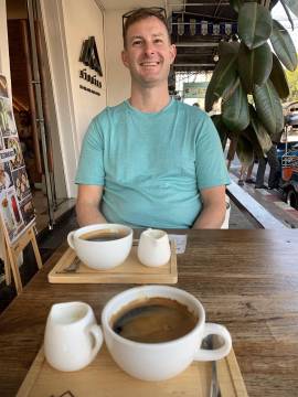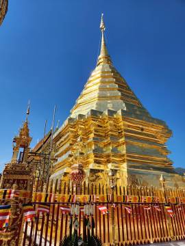 Disappointed by the inability to see anything exciting, we wandered off to see what else lay on the temple grounds. Not seeing anything particularly captivating other than some stray temple dogs, we decided to start our descent, this time opting for the 306 stairs of the Naga Staircase. At the base there was the typical Thai collection of souvenir shops and snack stalls and we each got a coconut smoothie for the return trip. We soon found our South Korean friends and the correct taxi and headed back into Chiang Mai.