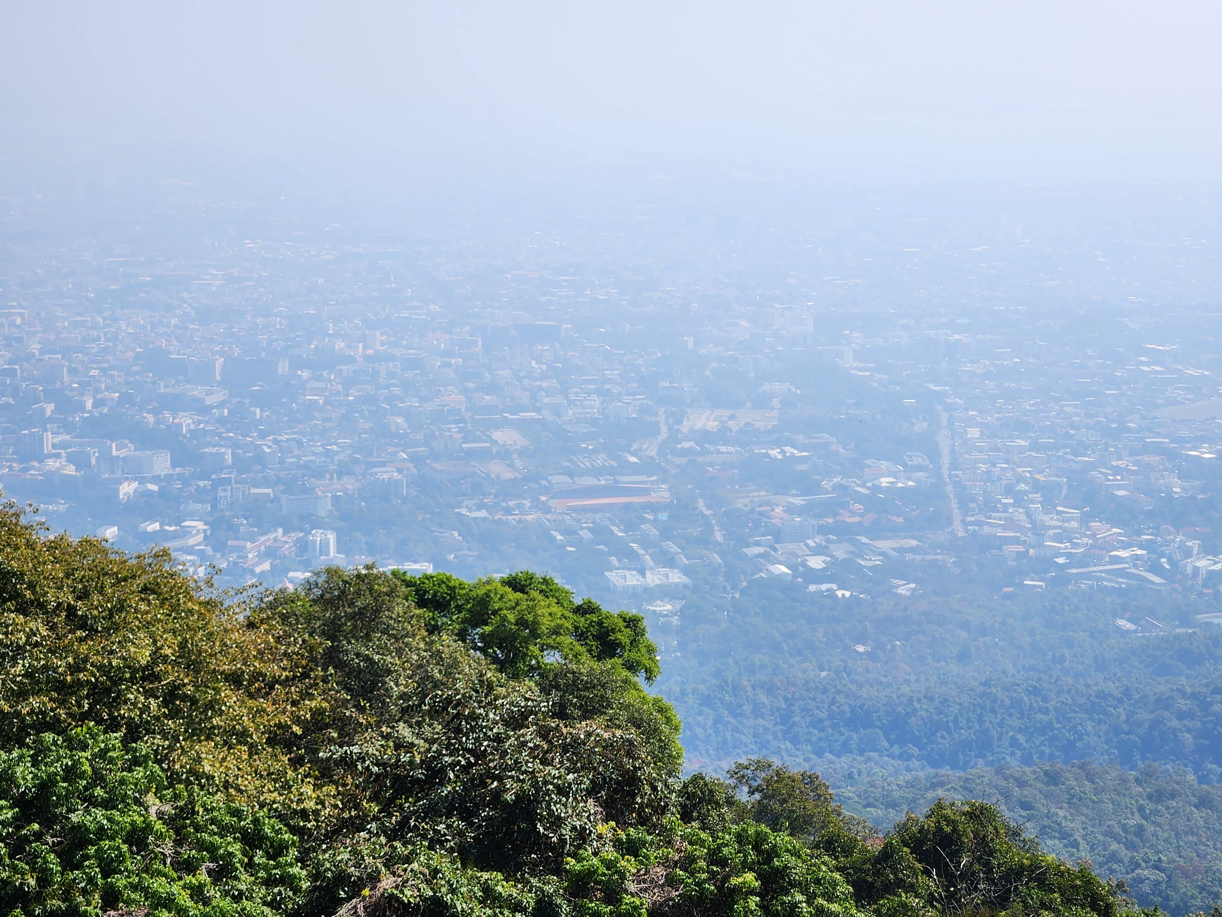 We went and found the actual ticket booth, bought admission for two and went in to explore Doi Suthep. It was pretty watty. And looked like most of the other wats. There were some Buddhas and lots of gold. Its gimmick just happened to be that it was on top of a mountain. So we went to find the observation deck that we hoped would give us a great view of Chiang Mai down below. And… it was too smoggy to see anything. The city of Chiang Mai was obscured by a thick cloudy haze. So we had to guess what it would have looked like had there not been air pollution. There is a chance that we were seeing the effects of the “burning season” when farmers in the northern part of Thailand burn their fields to prepare the land for the planting of the next crops.