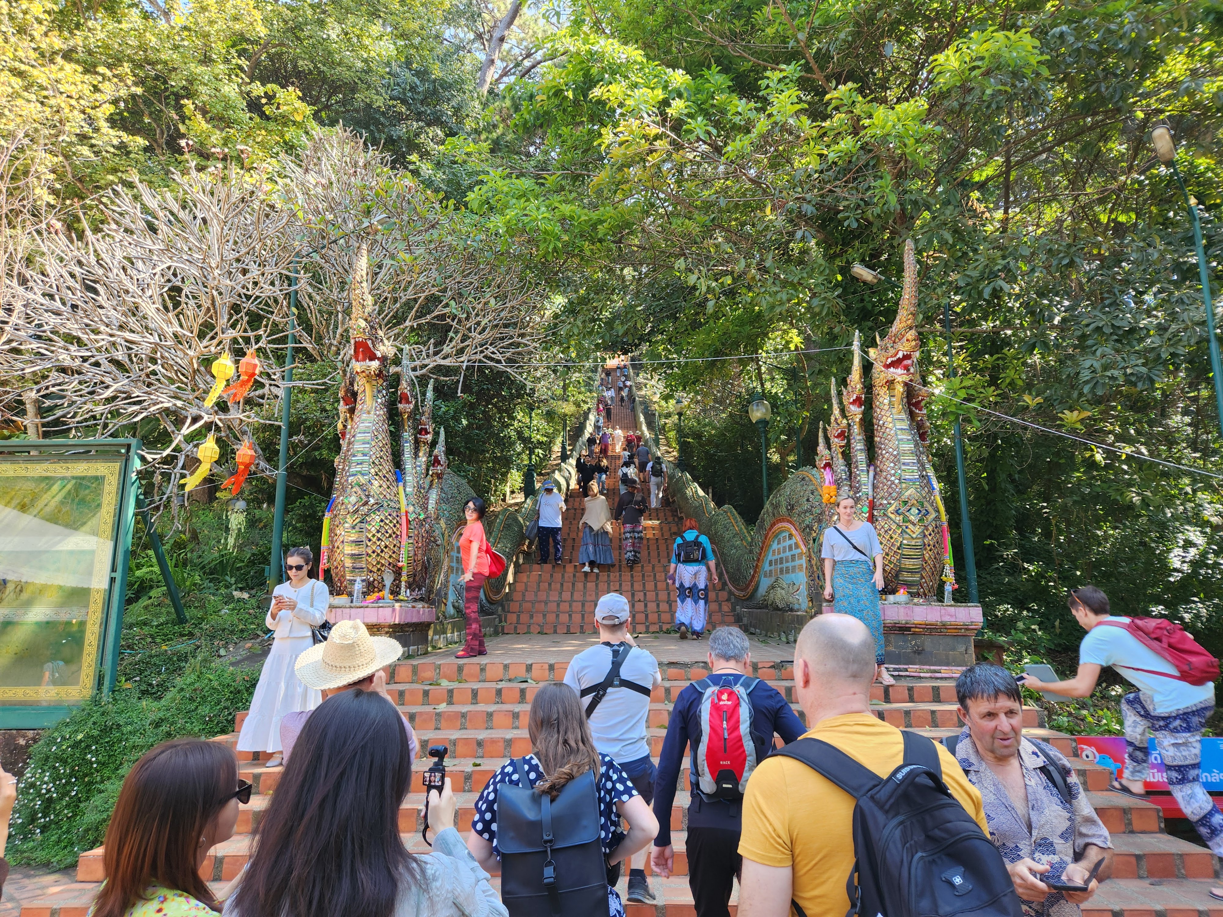 Part of the deal that we had reached with our red truck taxi driver was that she would wait for one hour once she dropped us off so we could explore the wat atop Doi Suthep and would then take us back into Chiang Mai. We took a picture of her license plate and made sure we knew where to find her in an hour and set off to climb the famous steps of the temple.