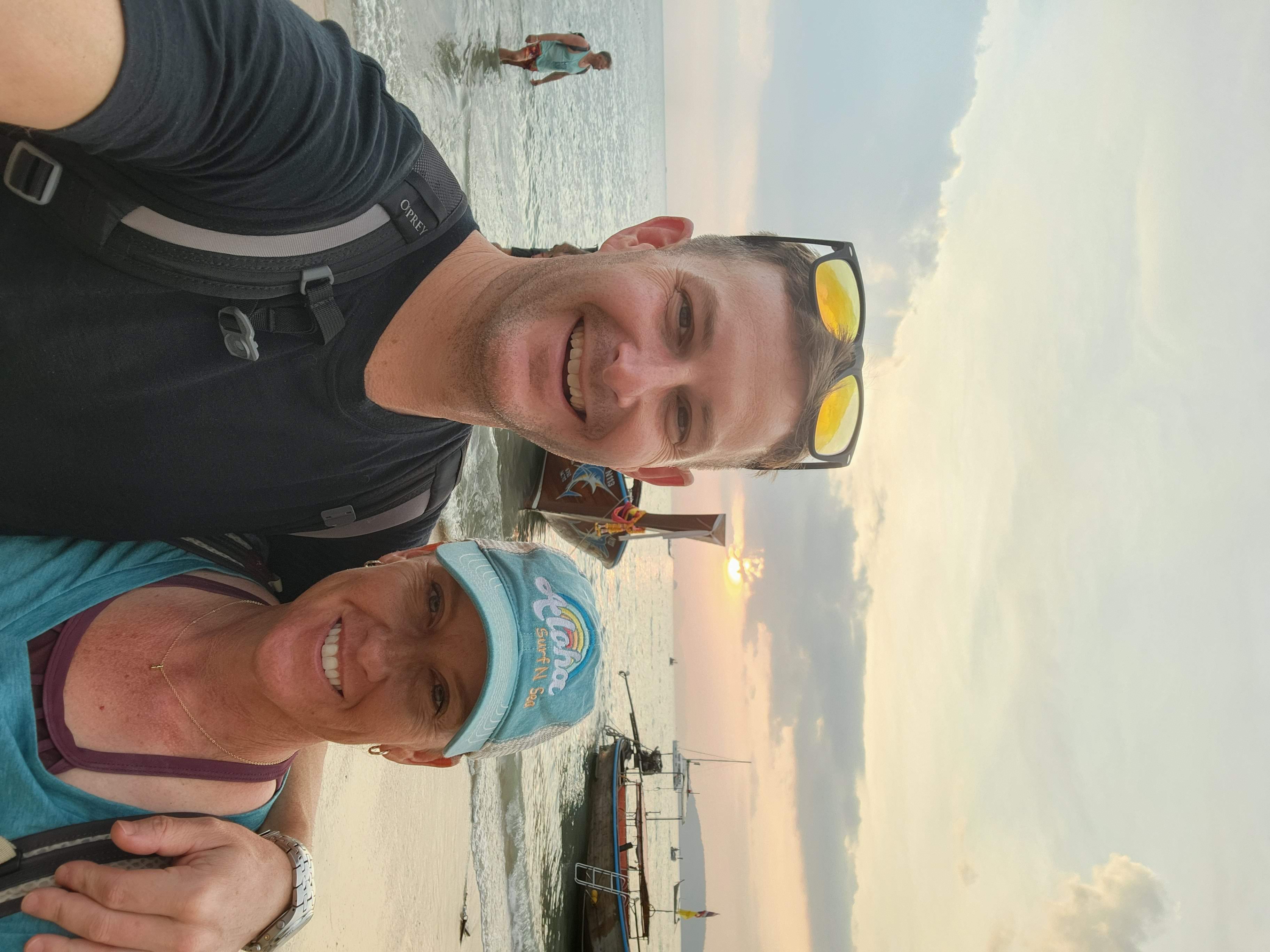 We hung out on the beach and in our hammocks long enough to catch the sunset over the bay and then decided to go in search of some dinner. Scott had read about a food market near the beach so we went in search of it. As we walked through the beachtown of Ao Nang we quickly sensed that we were in the Thai equivalent of Myrtle Beach, just with better scenery, with the iconic limestone karsts as a charmingly redeeming backdrop and antidote to the seediness of the town. I might have been hangry by this point so it felt like we walked for miles, but we finally found the food market and picked a stall to order from. The food was good and refueled us for the walk back up the hill to our hotel.