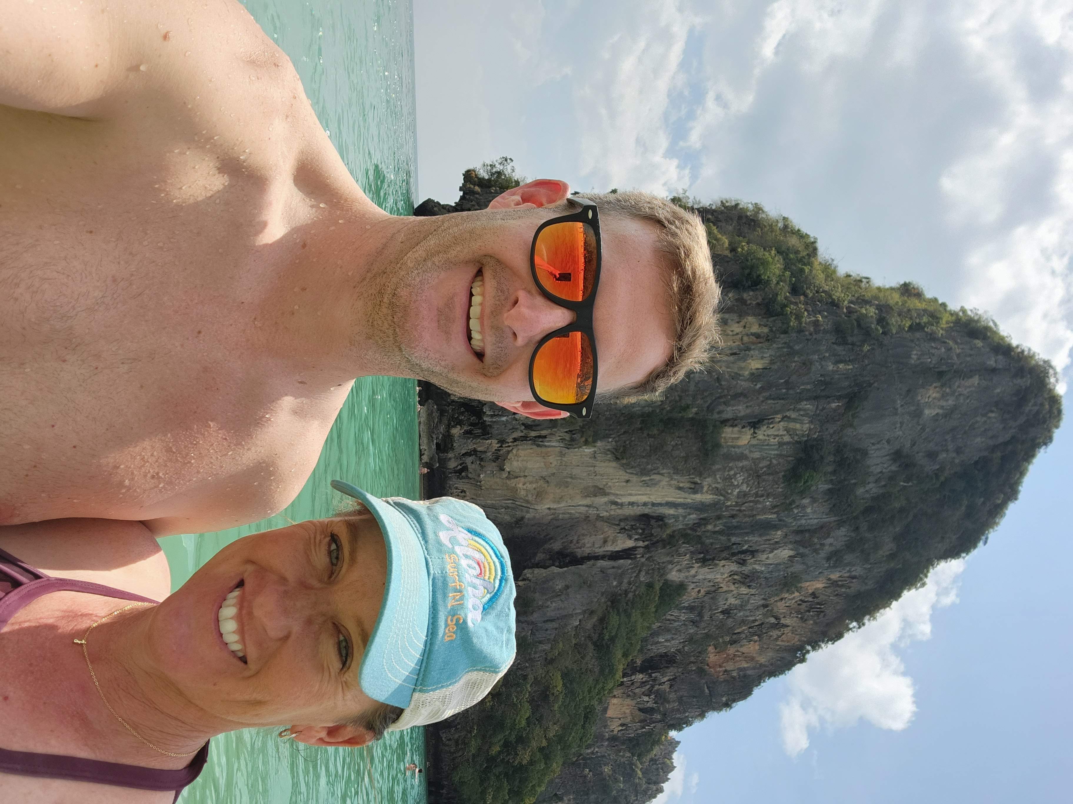 By the time we finally reached Phra Nang Cave and beach, it was pretty crowded. Luckily there was not as much boat traffic on this side of the peninsula so it was much quieter. We took a brief peak into the cave to see all of the, um, unique offerings that had been left in it, took the requisite pictures, and then ventured off in search of a good place to hang our hammocks along the beach. We had to take turns swimming again since this beach was a prime spot to have your stuff stolen. The water was a clear turquoise and was stunning. There was a sandbar that you could wade waist deep along that led you to one of the huge karsts that had its own sandy beach. We spent several hours enjoying the beach, thoroughly soaking in both the sun and the surreal scenery, before deciding to eat a bite for lunch overlooking the bay, and then catch a longtail boat back to Ao Nang.
