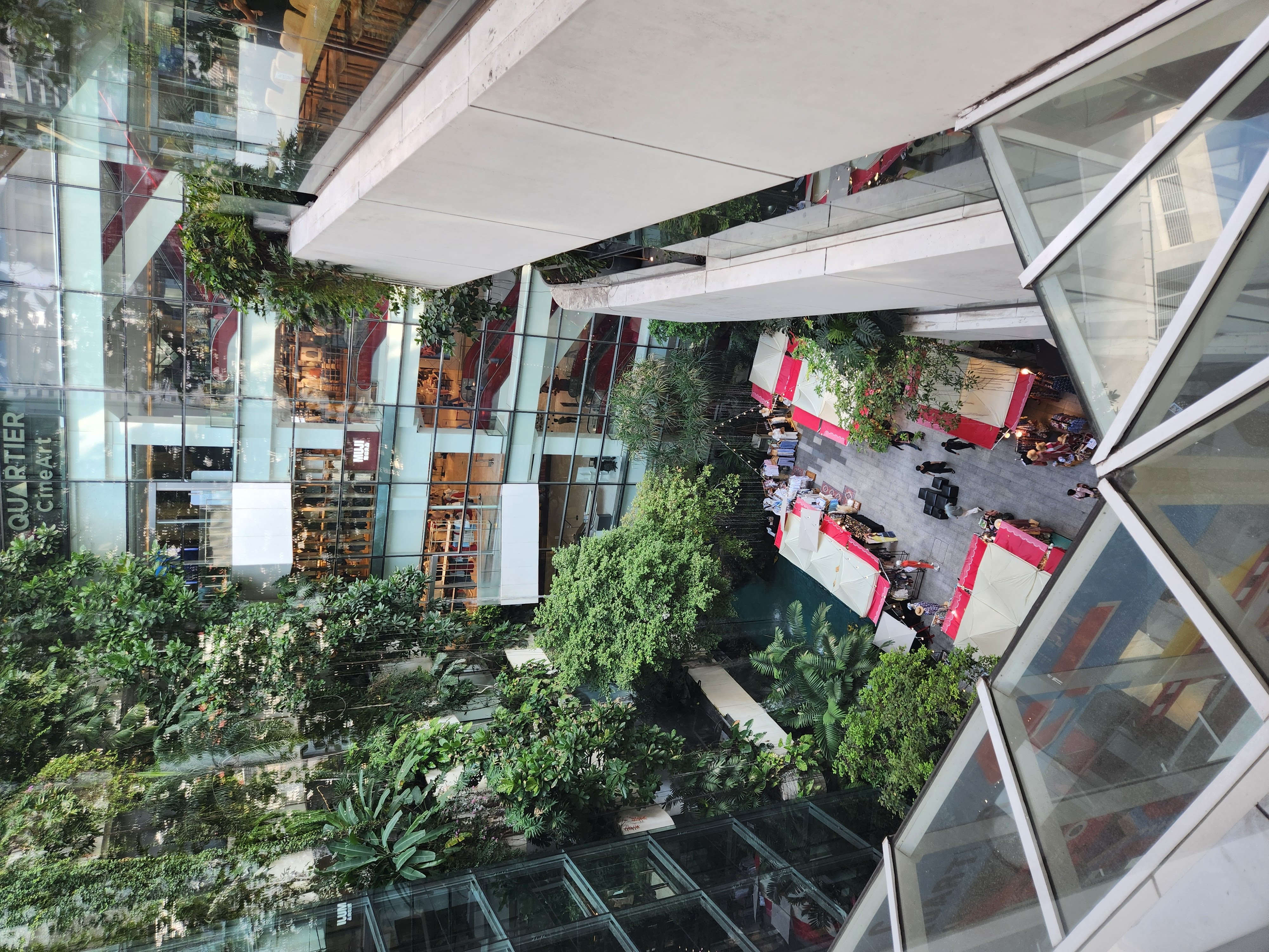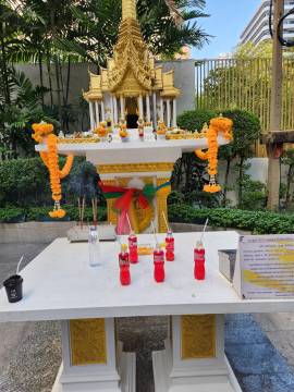 Bodies now beat into submission, we staggered out of the building in search of some lunch. We ended up at a large mall (one of thousands it seemed) near our hotel, called the Em Quartier. The malls in Bangkok were just unbelievable- several stories tall, chocked full of luxury goods stores (Hermes, Fendi, Dior, Louis Vuitton, etc.) and extravagantly decorated with waterfalls and live plants. We had heard that the food court here was worth checking out so we scouted out our options. We settled on a pizza place and split one while people-watching and admiring the ostentatious surroundings.