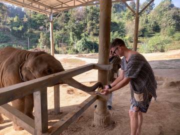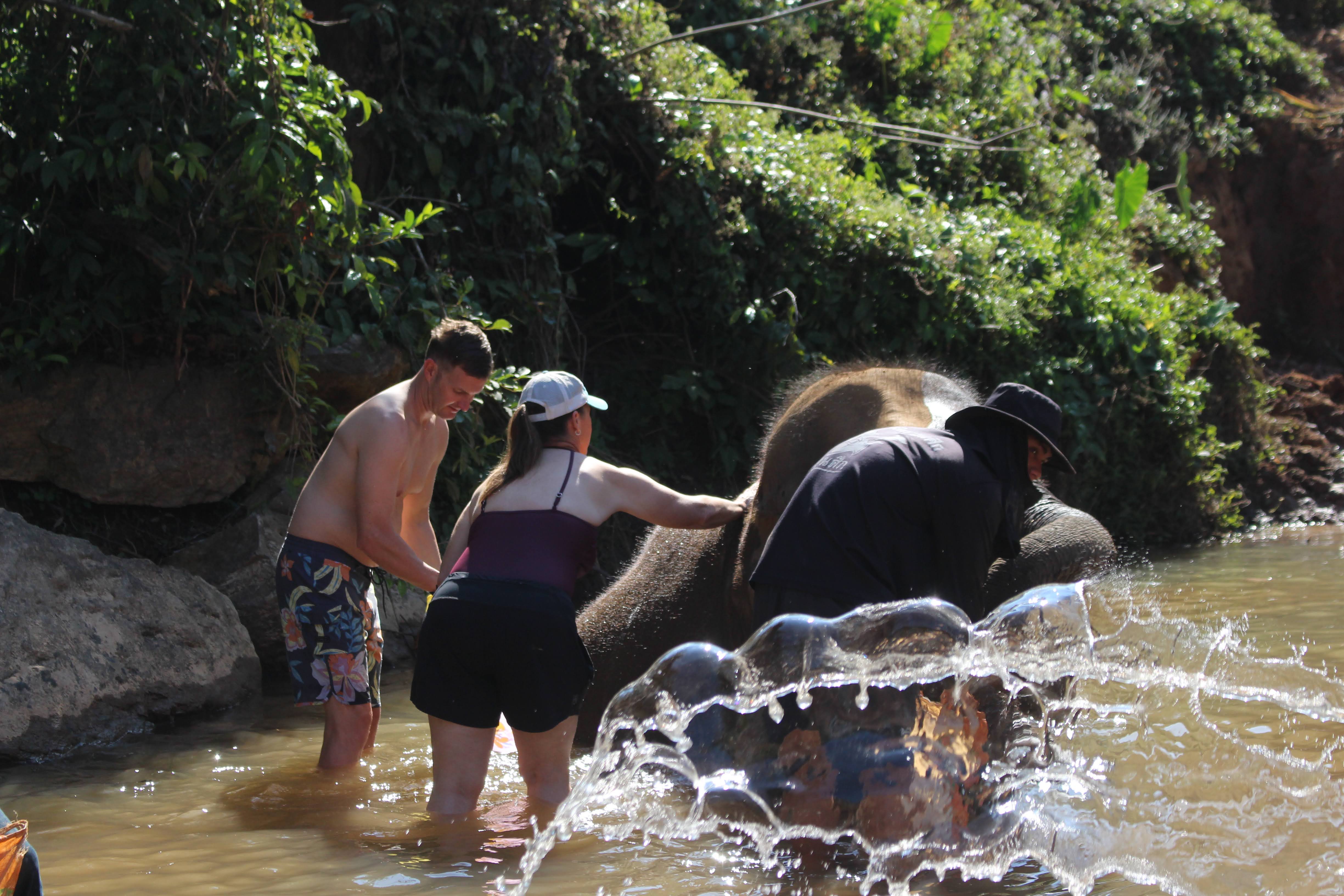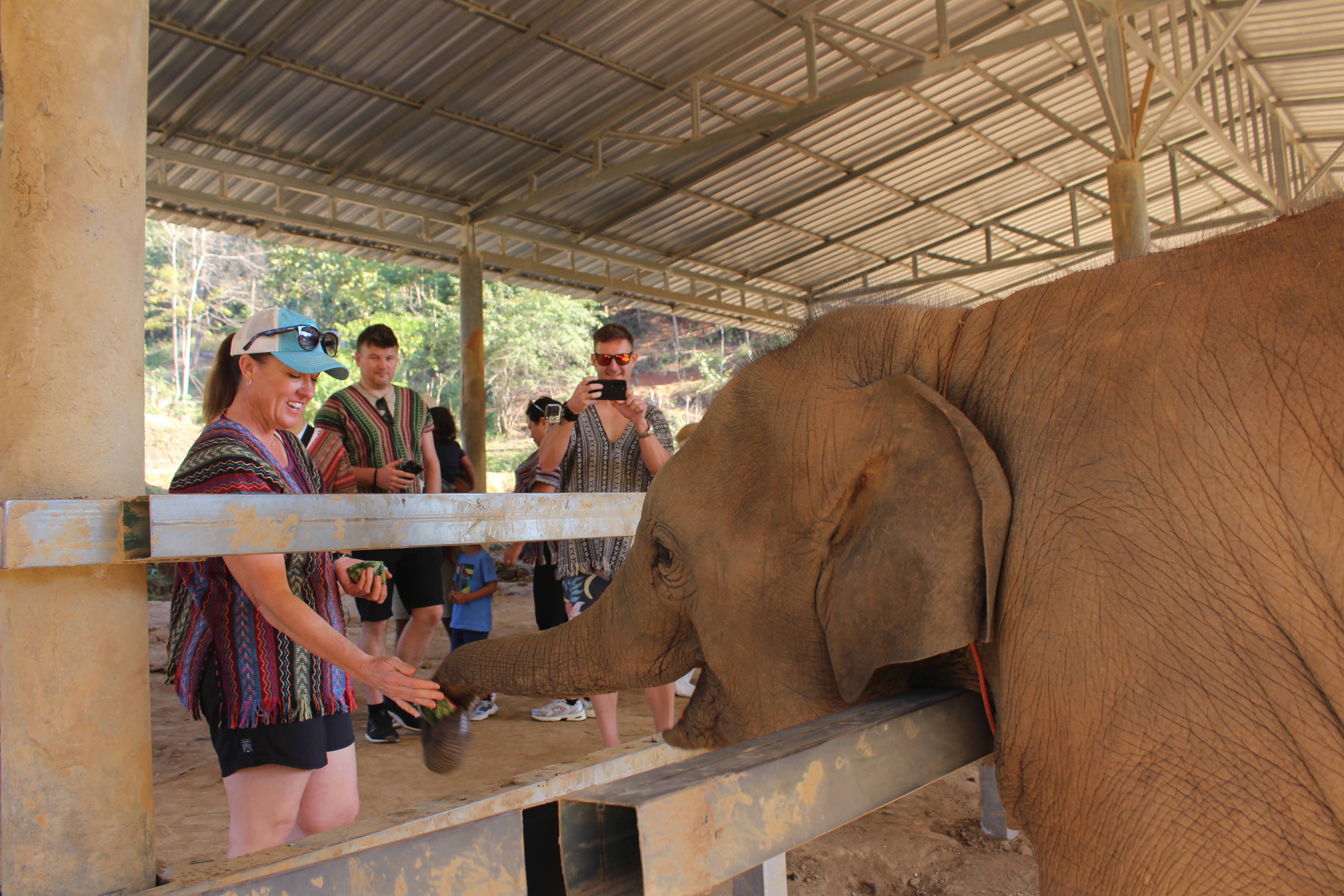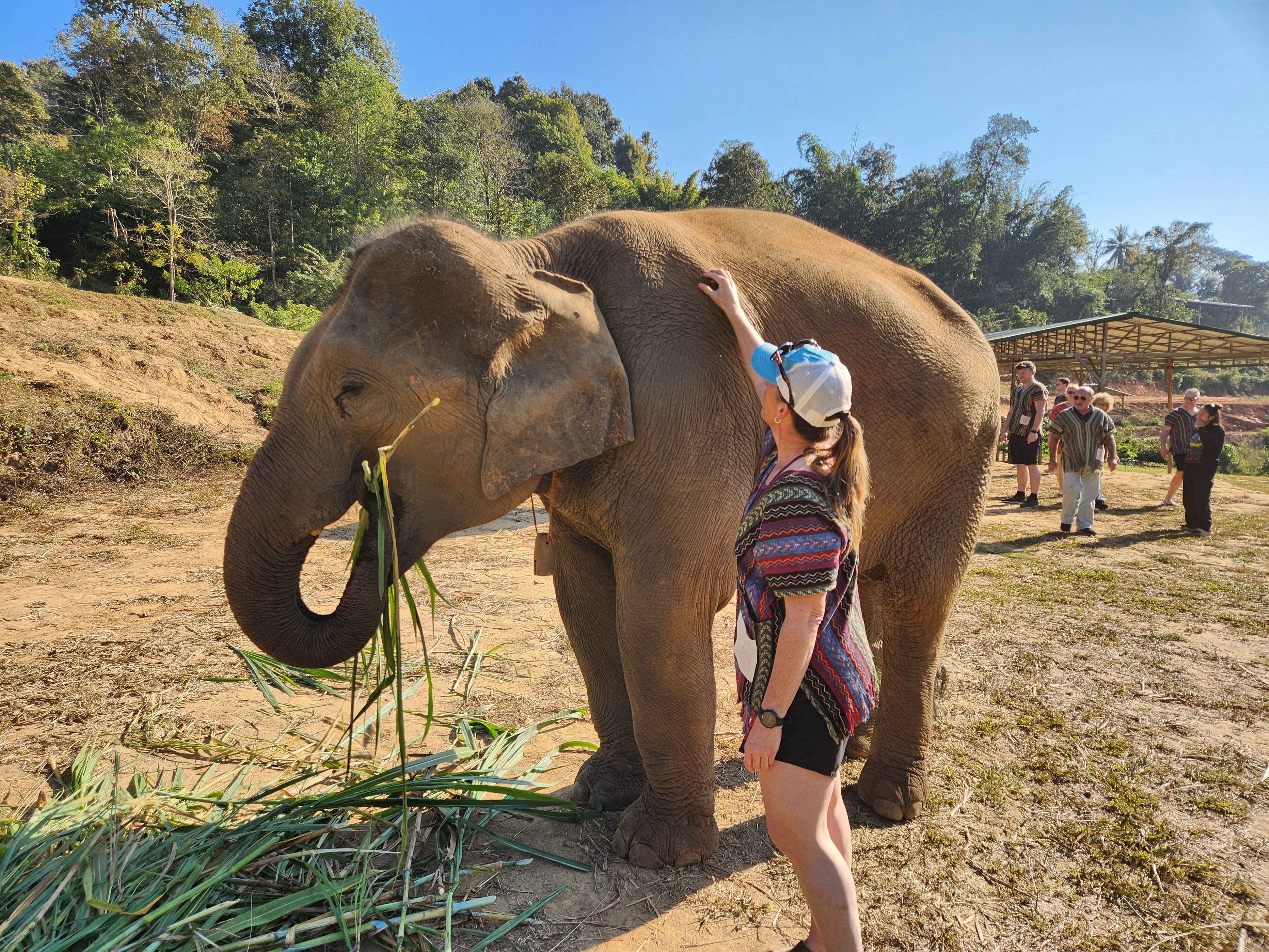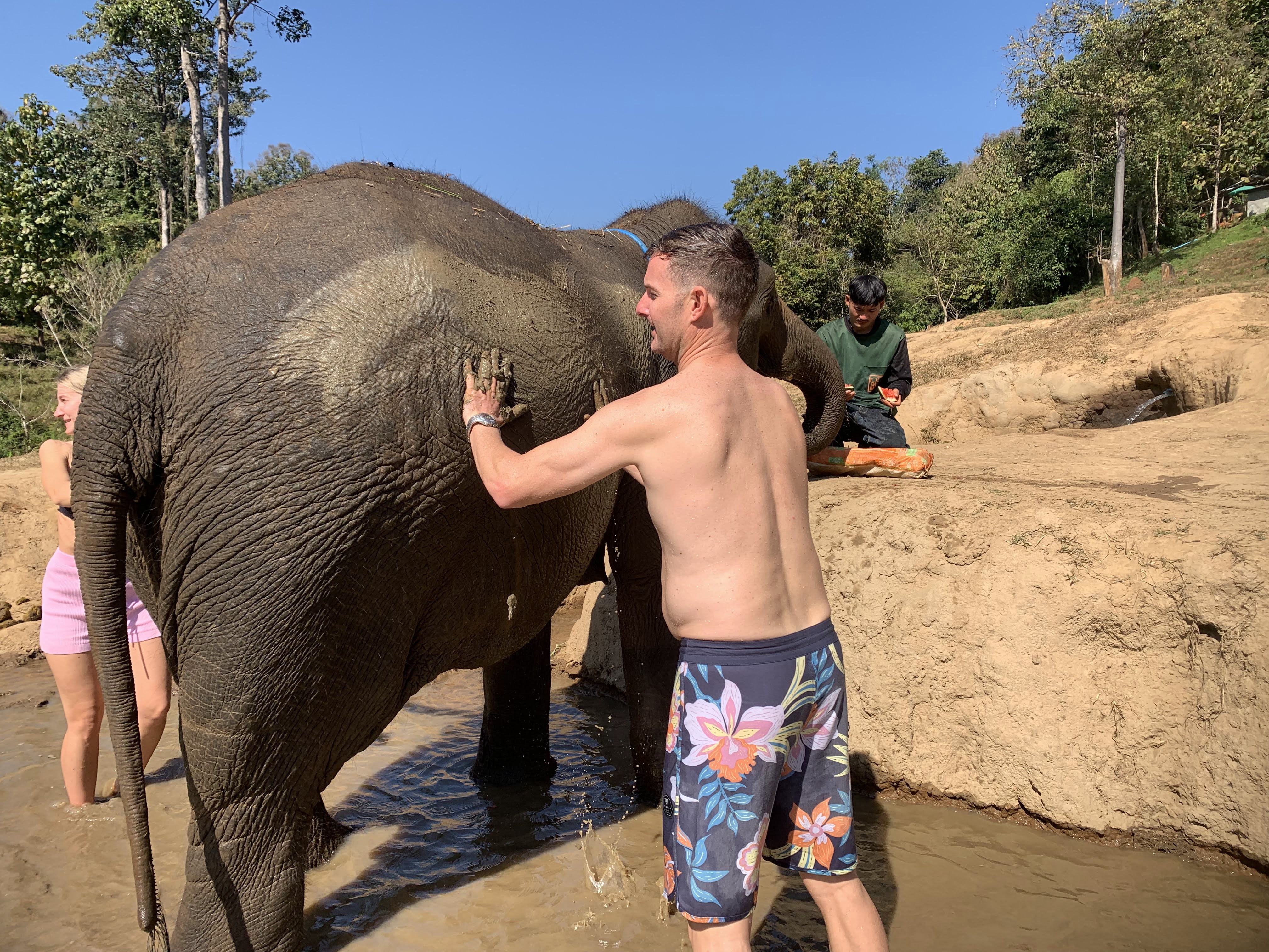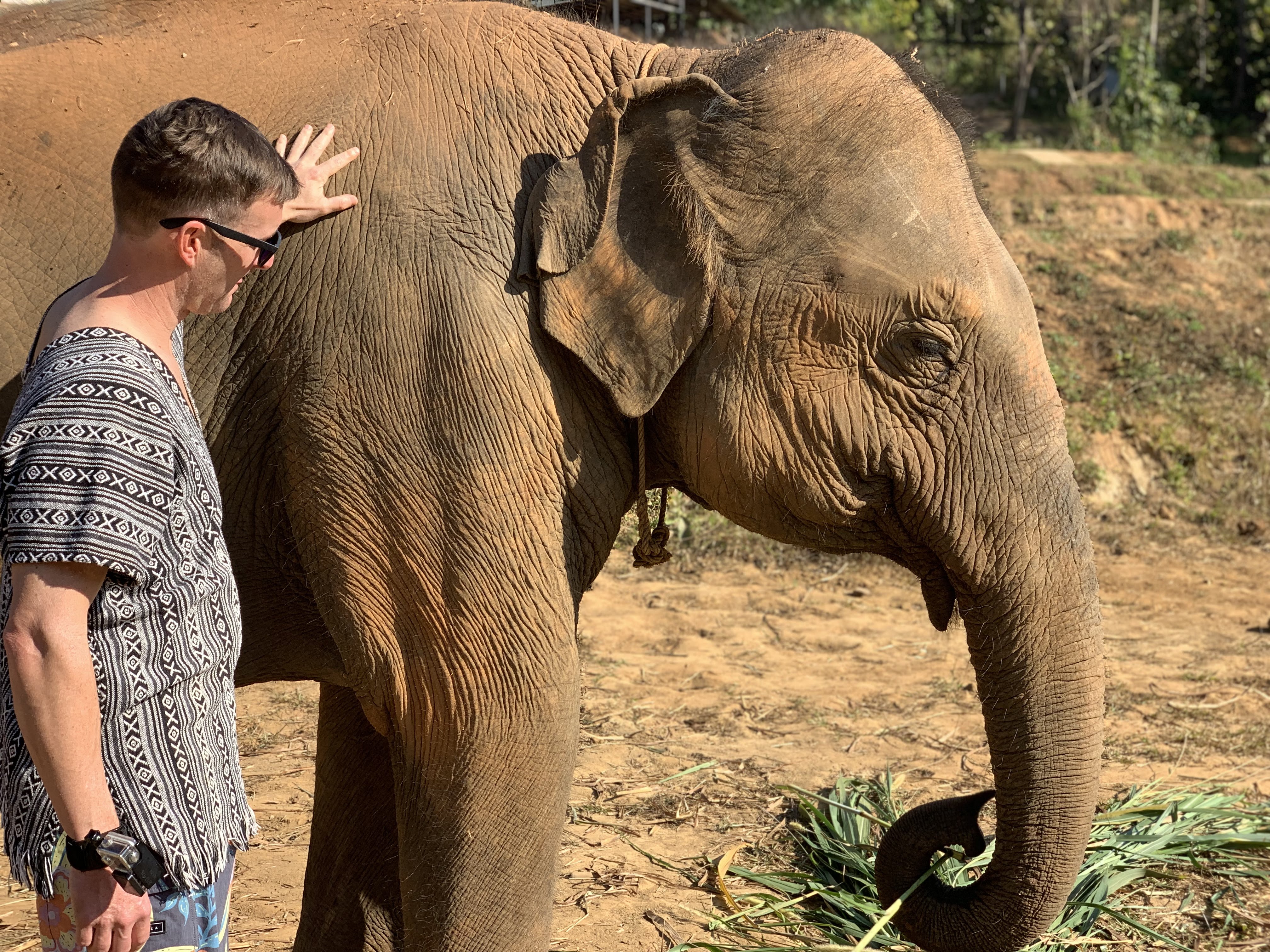 Author’s note: I had to pick my battles here. Through my research prior to our trip, I had learned that truly ethical elephant sanctuaries are touch free and do not let participants touch the elephants, only watch them from a comfortable distance. This means no feeding, no bathing, etc. While there has now been a movement to end elephant riding in Thailand, it is still technically legal, and many unsavory companies still offer it. However, there are many other ways that elephants are exploited for the entertainment of humans: logging, circuses, and even the activities that we did with them such as the feeding, and bathing. Elephants don’t need us to bathe and mudbathe them, and in fact, would probably prefer we not.