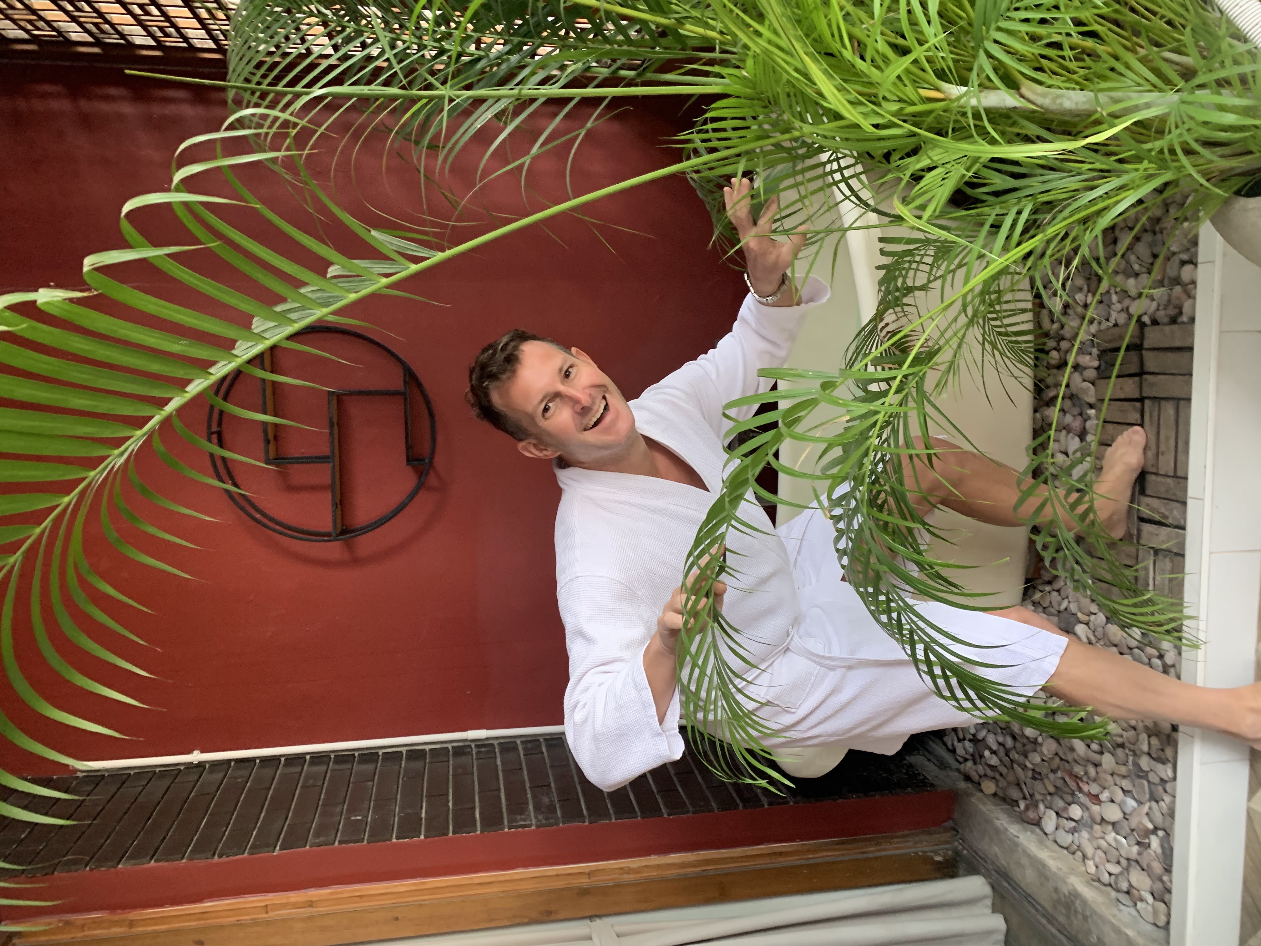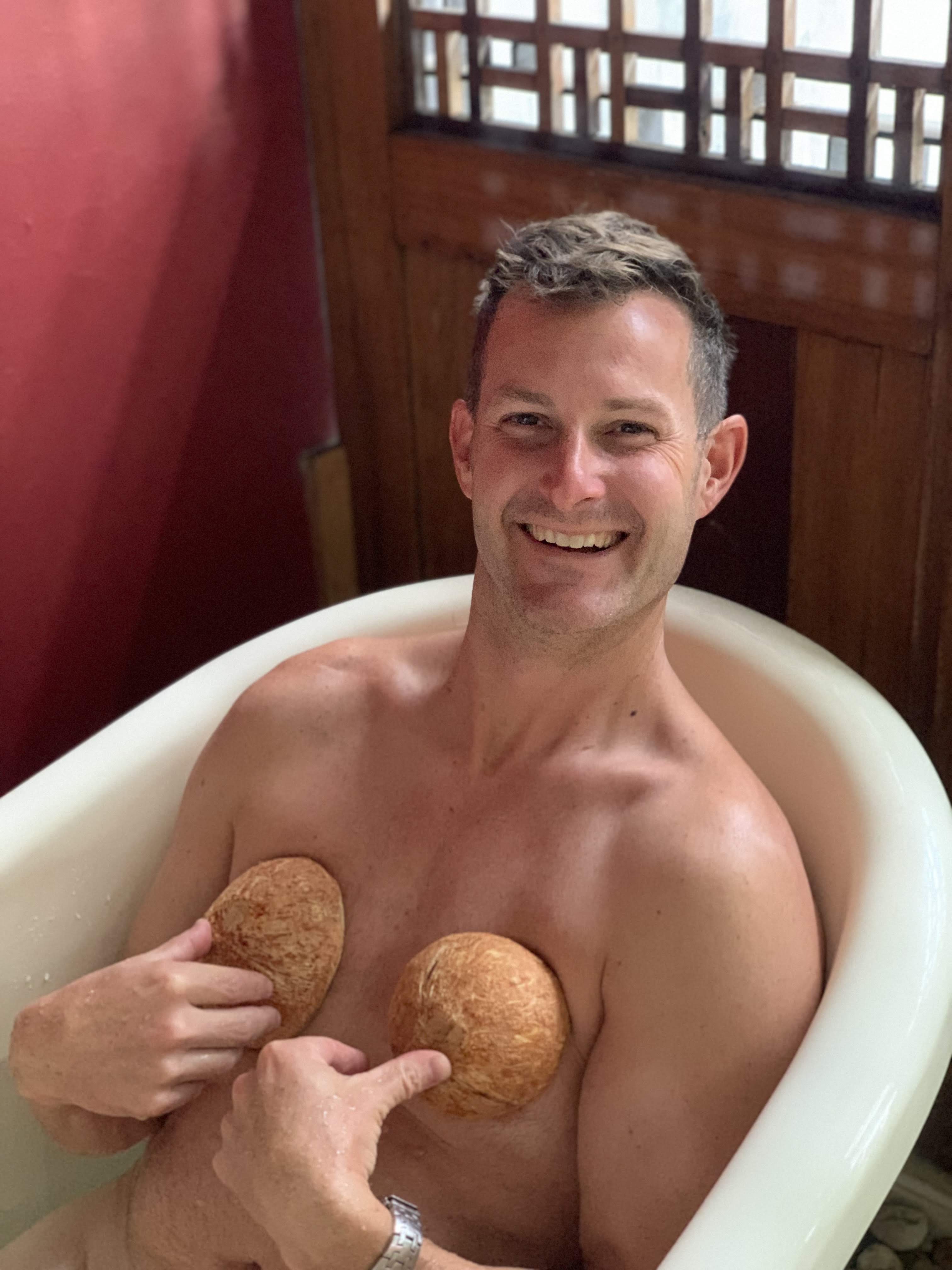 We started off the day by sleeping in so that we would be rested heading into the festivities and the long haul flight home early the next morning, as well as to let Scott get as much rest as possible since he wasn’t feeling 100%. It was now his turn to take a soak in the balcony tub and for a guy that isn’t into baths, he sure did seem to enjoy it and was more than happy to pose with all sorts of props I threw his way.
