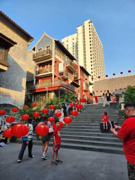 Along the way it was fun to see all the teenage girls dressed in a modern take on Chinese style dresses posing for Instagram photoshoots in alleys, hundreds of red and yellow Chinese lanterns strung from building to building creating a dramatic decorative ceiling overhead, or near other picture worthy Chinese New Year symbols that were adorning the neighborhood. It was reminiscent of being in a downtown Greenville park or garden during prom season. Some phenomena are universal.
