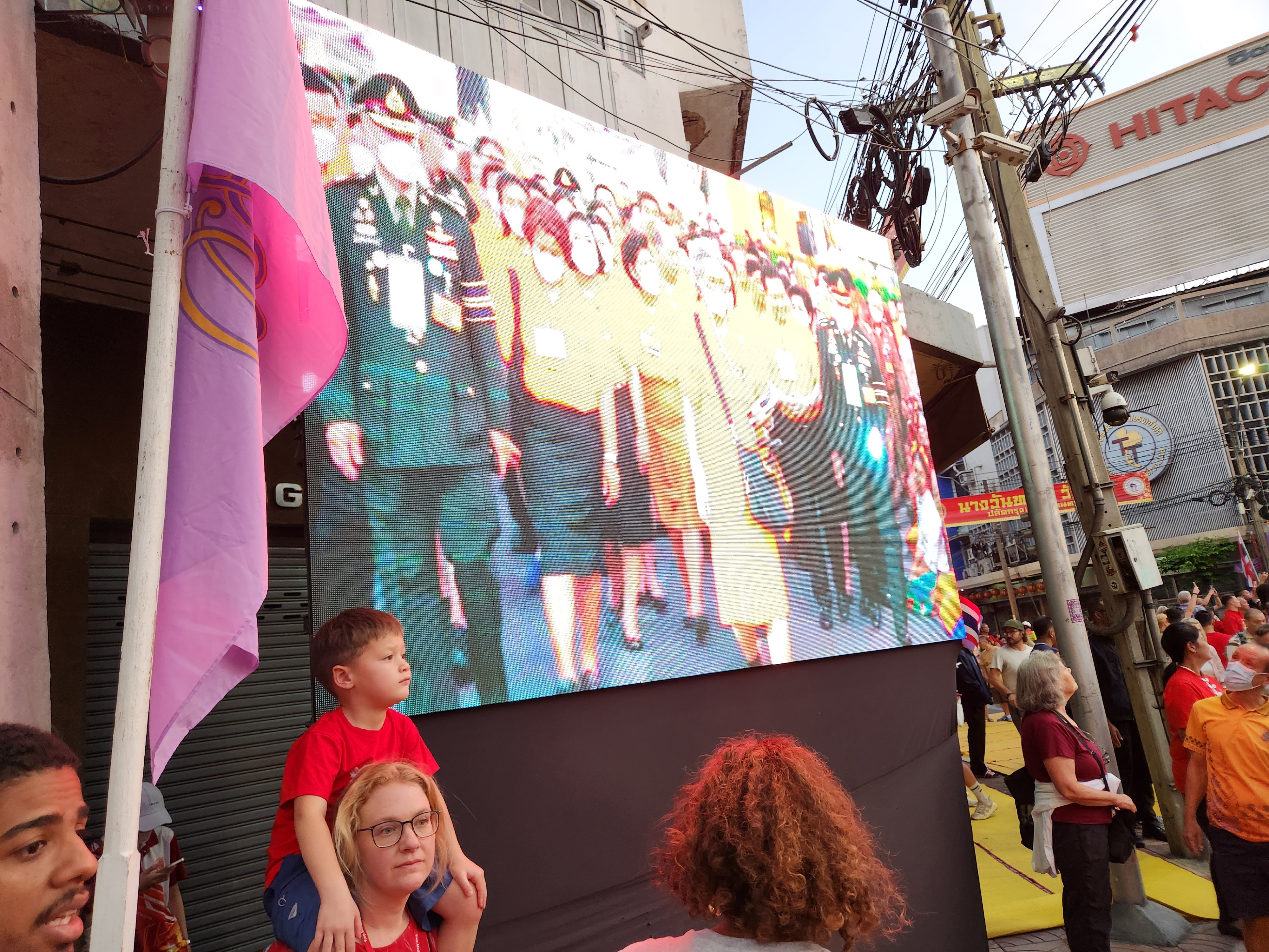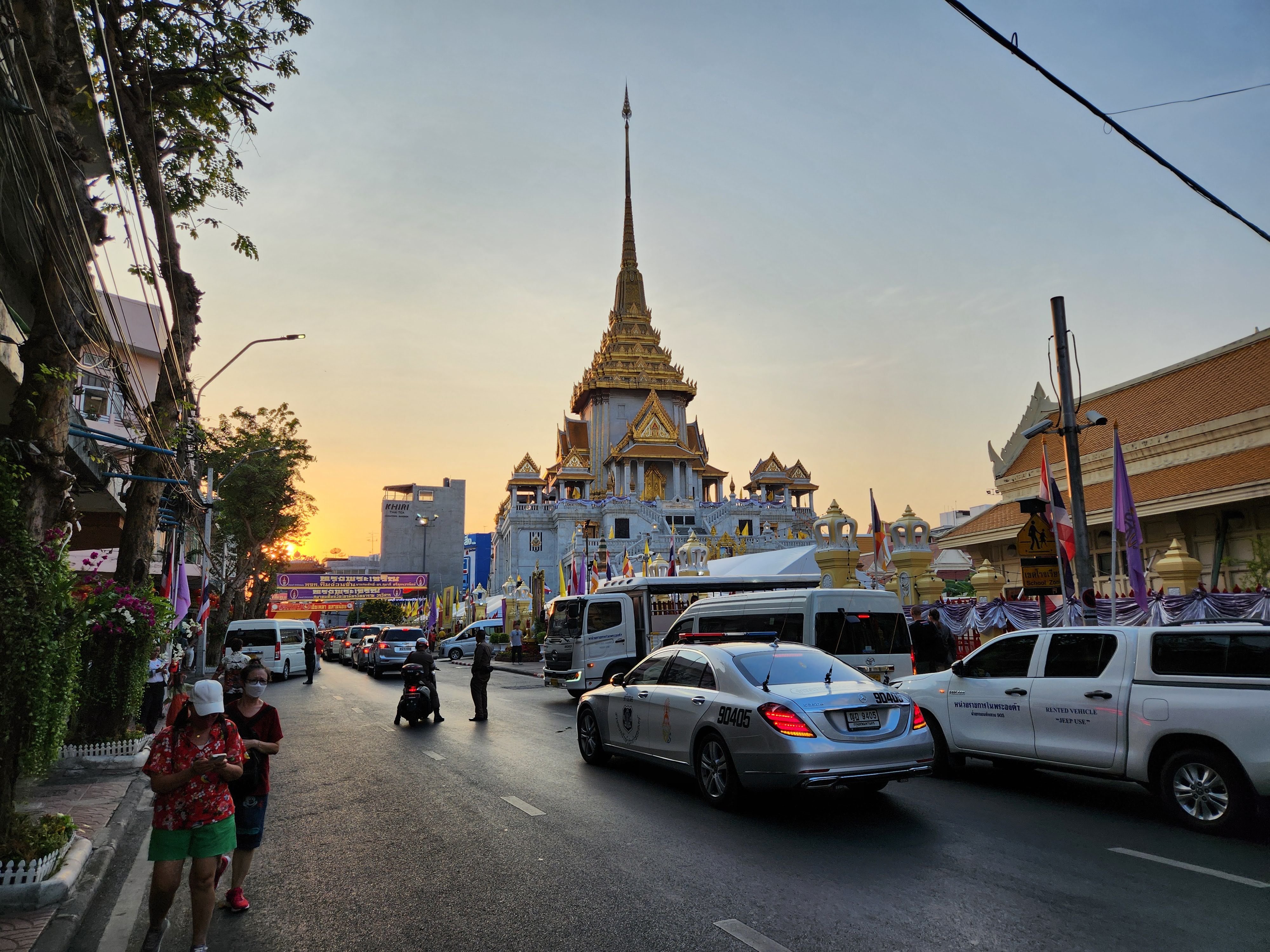 When we reached Yaowarat we joined a crowd that was gathered round a Jumbotron, some sort of livestream on its huge screen. After watching it for a few minutes we surmised that it was broadcasting some sort of ceremony and we eventually pieced together that it was members of the Thai royal family that were in a procession or formality of sorts. We then quickly realized that we were standing just a few meters away from where this exact ceremony was taking place and a few moments later we spotted who we would eventually learn was the Thai princess1, Princess Maha Chakri Sirindhorn, the King of Thailand’s sister.