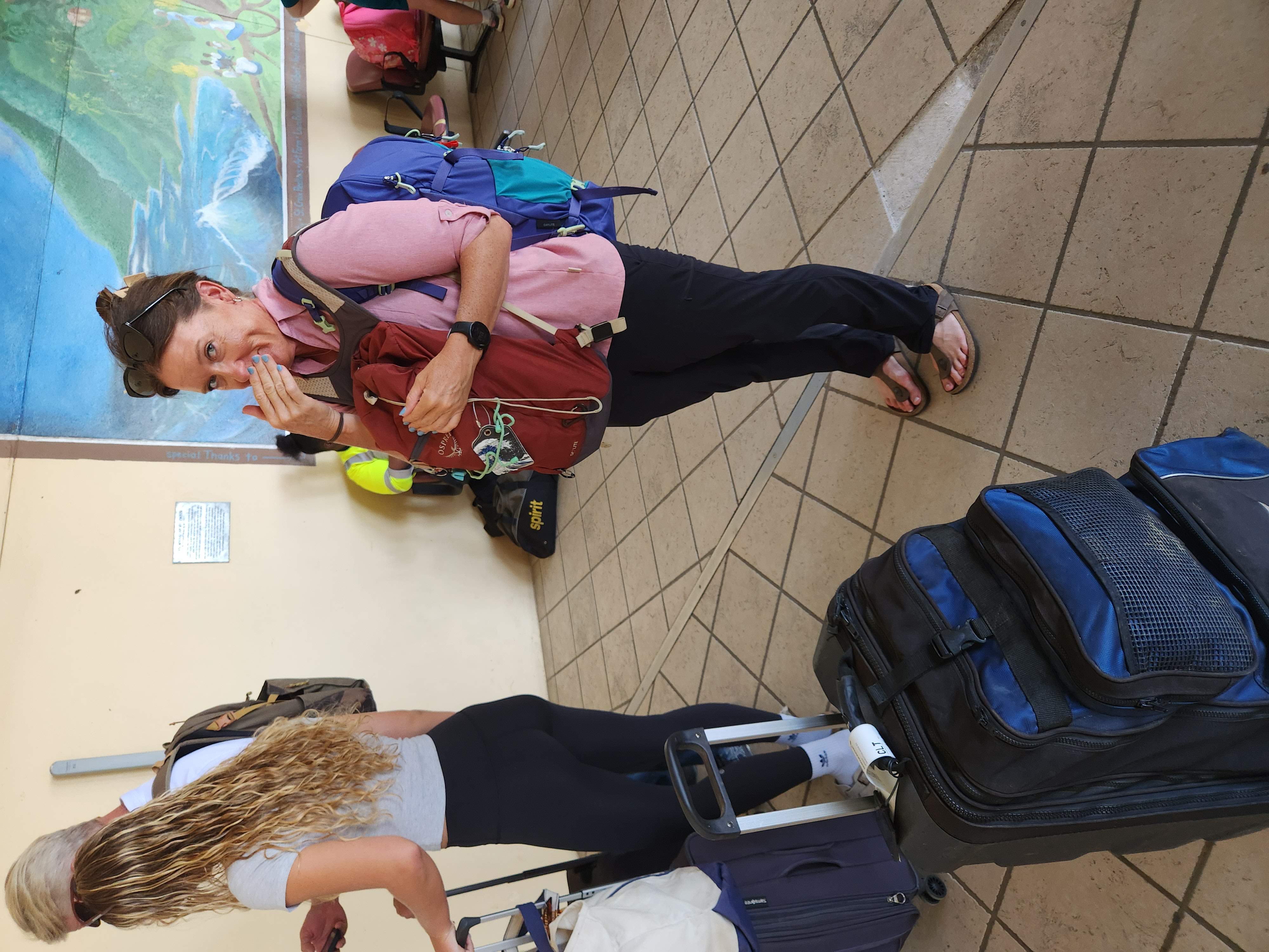 When we got to the airport we said goodbye to Jane and then tried to figure out how to check Scott’s dive bag. The STX airport is mostly open air prior to customs and security and when we figured out the baggage check situation the agent informed us that our bag was 8 lbs over. We had packed the dive weights in the bag so we grabbed them out to help make weight. This brought the bag into an acceptable range. She tagged it and then instructed us to carry it over to the customs line ourselves. In a moment of sneakiness I decided that no one (aside from the guy that had to lift the bag into the airplane) would know we put the weights back into the bag since it was already tagged as “acceptable” so I did exactly that. I am one rebellious rebel.