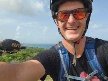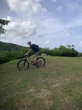 While I was teaching in the morning, Scott had decided to take the borrowed mountain bike out for a spin. He started out from the Pony Club grounds and headed into the Sprat Hall Nature Preserve that he had hiked earlier in the week. He covered 11.5 miles in a little under two hours and had fun exploring an abandoned Coast Guard station (he loves abandoned buildings) and an old lighthouse. He hung out at the lighthouse for a bit and took in the panoramic views of the island that it provided. From that vantage point he could see the Anallay Bay tidal pools and all of Cane Bay. The trail to the lighthouse was quite steep so he said that the way back down was much easier and faster!