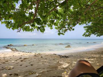 Scott dropped me back off at Sprat Hall for the afternoon sessions and then headed to Rainbow Beach for the afternoon where he strung his hammock between the trees right at the water’s edge and enjoyed looking out over the bay and occasionally taking a dip in the warm Caribbean. When he picked me up that afternoon we headed straight to Sandy Point to spend the rest of the evening.