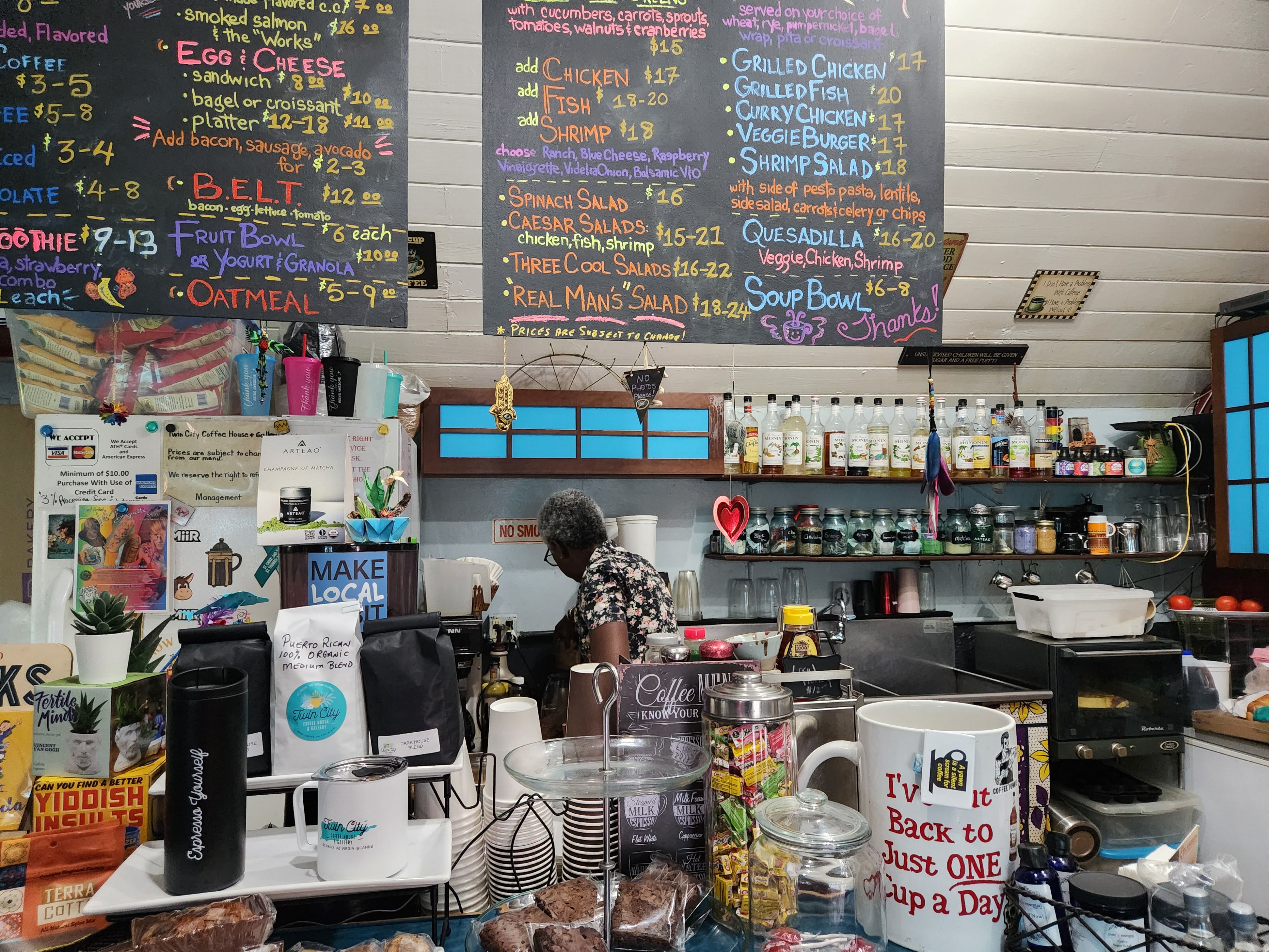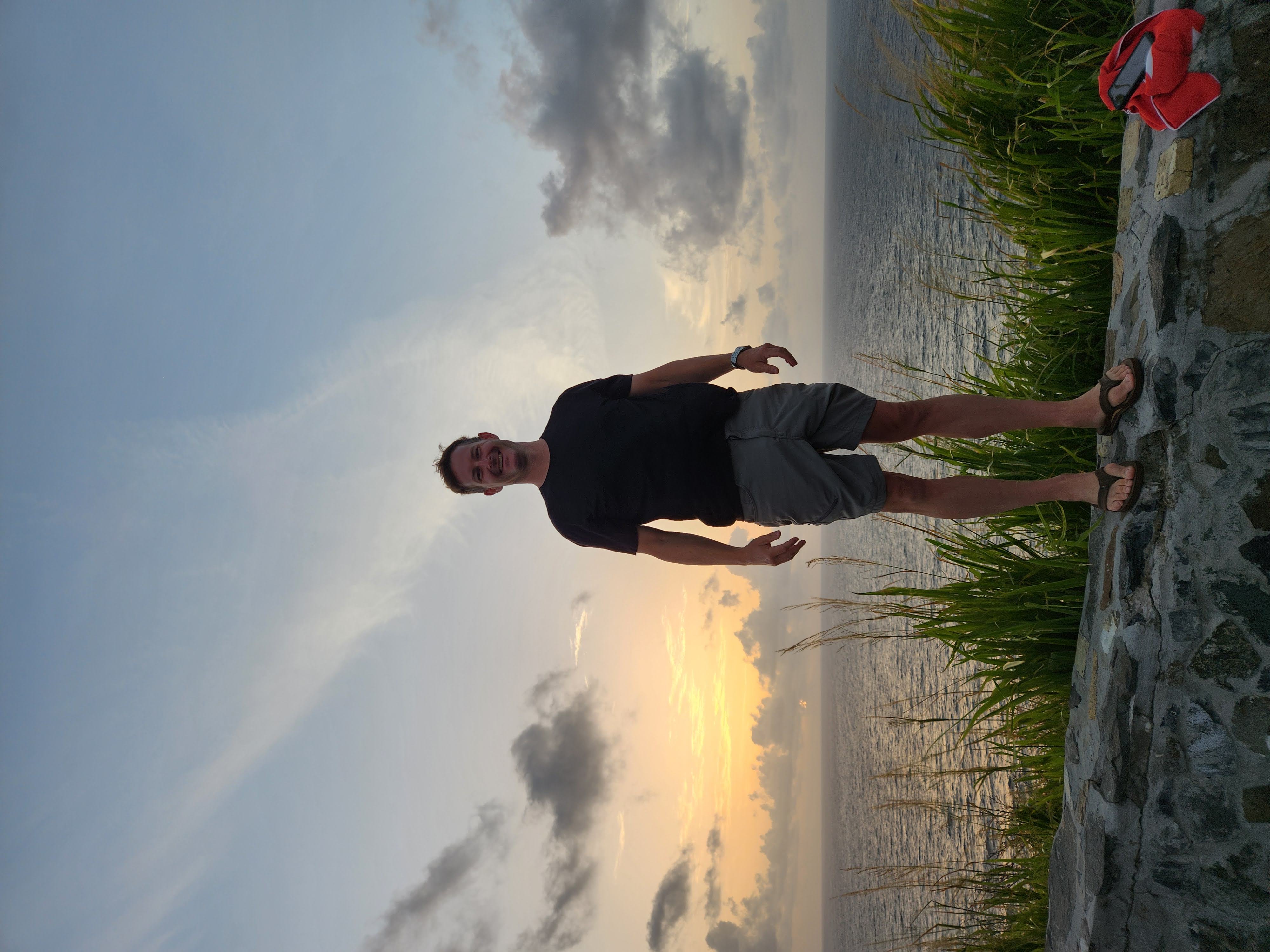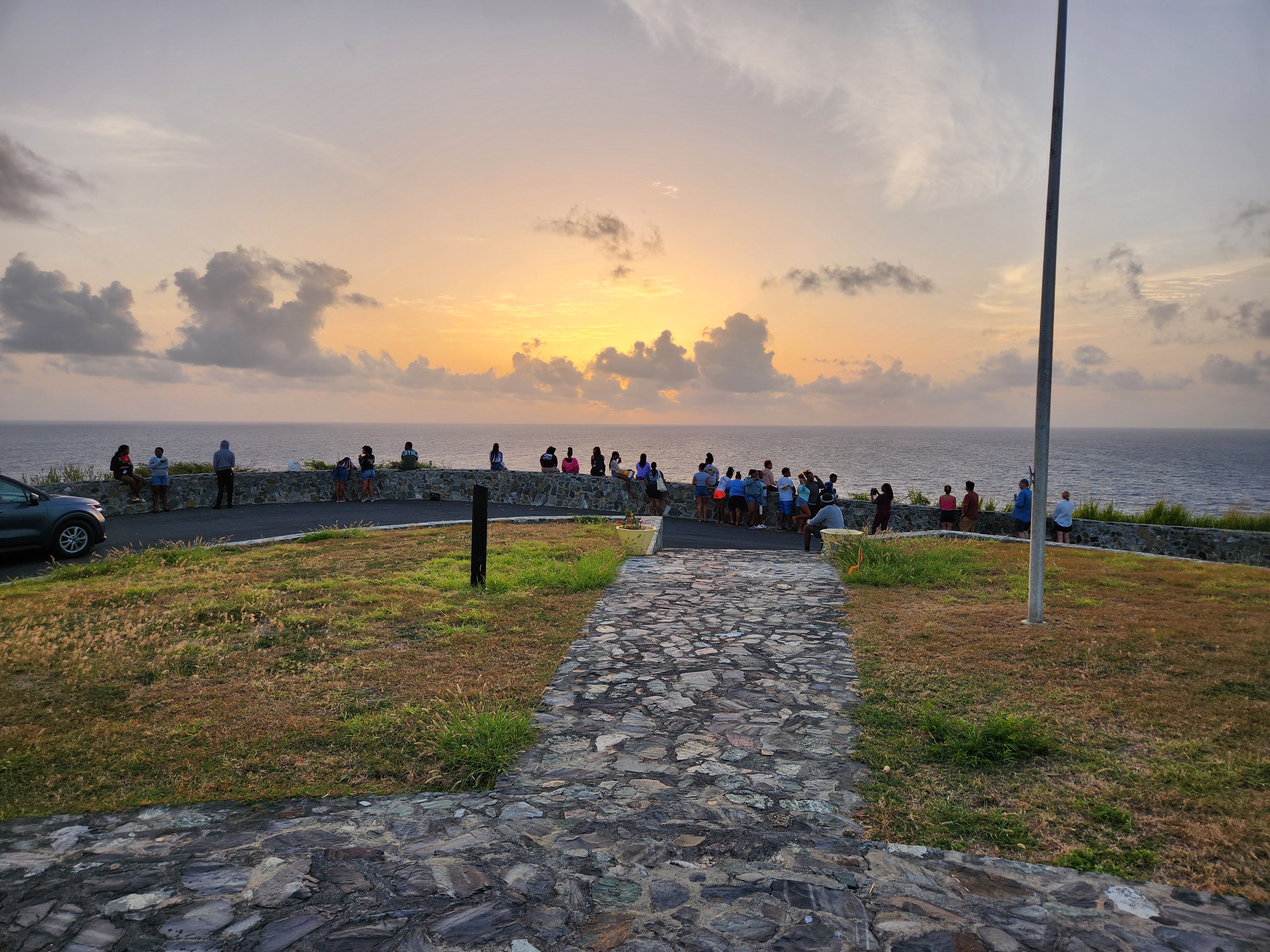 We woke up obscenely early this morning and hit the rough Cruzan roads by 4:30 AM to make our way to Point Udall, the easternmost spot in the United States, to catch the sunrise. It took us every bit of the hour we had allotted, and we arrived just in time to join the crowd of 50 or so other people who had gathered there before us to watch the sun make its way up, emerge above the horizon, and eventually break through the clouds. After we had done this “thing you’re supposed to do in the place you’re supposed to do it” we headed back toward Christiansted in search of breakfast. We were initially puzzled that many of the breakfast spots that had come recommended in Scott’s research weren’t open until we remembered that today was a holiday: it was Juneteenth. We eventually found a breakfast spot in downtown Christiansted that was open and sat outside on their patio and had breakfast before returning back to Fredriksted for me to teach.