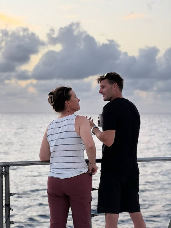 Where were we? Oh yes, the sunset cruise. We enjoyed getting front row seats and chatted with the family behind us- a group of siblings that had met up in STX from around the entire US. The rum punch started flowing1, and as always once I start drinking, I start telling Scott all the reasons he should marry me. And as this always goes, he tells me all the reasons we shouldn’t get married. It was during this passionate “Request for Proposal phase of the evening” (that’s what Scott calls this) as we were standing along the boat’s railings looking out over the dramatic colorscape that the sunset offered up that evening, that the siblings we had met took the VERY BEST photographs of us that I have ever seen. We had no idea that they’d taken them and when we eventually sat back down they said “I hope you don’t mind but we wanted to snap some pictures of you guys because it looked like you were enjoying yourselves so much.” We thanked them profusely and assured them there was nothing weird at all about them having done so and they shared the photos with us. I am so thankful of their kind gesture because it captured candid snapshots of an incredible evening for us and the shots so perfectly capture and sum up our relationship.