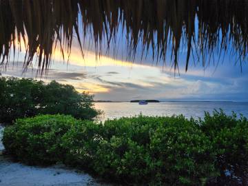 We had a little time before we needed to shower and get dressed for the wedding so we decided to take out one of the kayaks that we had access to with our rental. We decided on the tandem kayak and I was surprised when we were able to both lower ourselves down into it off the dock successfully without capsizing it. We (and by “we” I mean mostly Scott) paddled our way out of our marina’s channel and into the bay. The bay was protected on three sides by mangroves and made a protected area for anchoring boats. We paddled around the area for a while and observed some of the boats before hopping out of the kayak and taking a little float next to it. The water was surprisingly shallow and the sand was unpleasantly squishy, reminding me of Lake Hartwell’s muddy base as it squished between my toes so I didn’t spend much time out of the boat. We decided to head back in and we were now paddling against the current so I actually helped Scott paddle this time. We disembarked from the kayak and climbed back up onto the dock surprisingly easily, again not capsizing the boat.