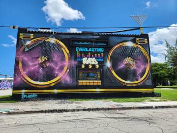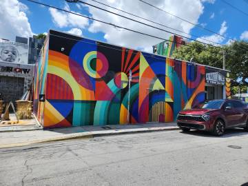 We hit the road and headed north into Miami for some sightseeing. Scott wanted me to see Wynwood Walls, a famous outdoor street-art and graffiti district downtown. We arrived about two hours later and it was already 95° with typical Florida humidity so rather than checking it out on foot, we just drove around to take it all in. Since it was a Sunday this wasn’t a bad plan since there was very little traffic. No doubt we didn’t get as rich an experience as we would have on foot, but we were exhausted and the thought of traipsing around in the heat was quite unappealing.