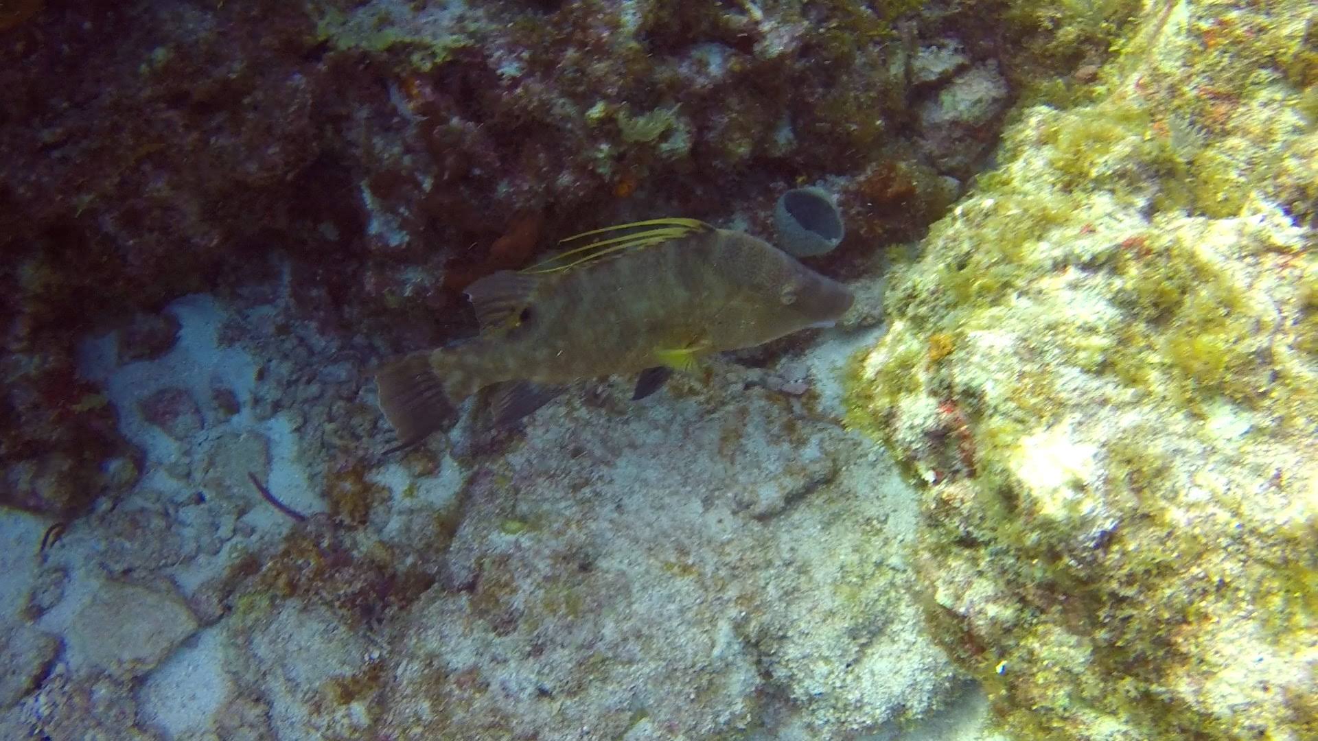 Scott got back a little after lunch and told me about his dive. The dive shop was about 20 minutes away from our boat, and was called Key Largo Dive Center. They did two dives and it was just Scott, one other customer, several staff and guides, and one student diver. Both of the dives were at Molasses Reef- the first spot was called Winch Hole and the second was called Aquarium. At the first he saw a barracuda, several interesting schools of fish, and the coral-encrusted winch that was the namesake of the location. At Aquarium, he saw a number of parrot fish, a 7 foot reef shark, an old Spanish anchor, and he enjoyed swimming through some cool coral caverns.