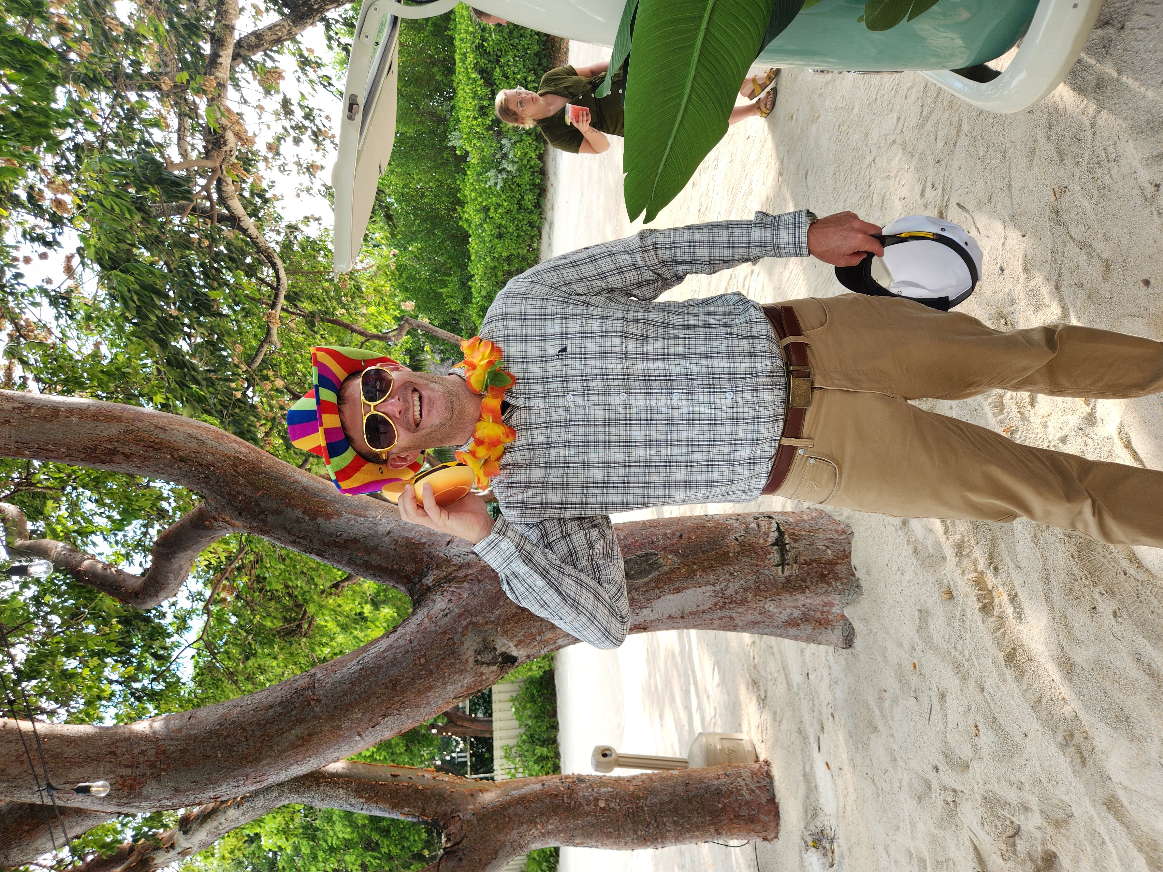 We had a little time before we needed to shower and get dressed for the wedding so we decided to take out one of the kayaks that we had access to with our rental. We decided on the tandem kayak and I was surprised when we were able to both lower ourselves down into it off the dock successfully without capsizing it. We (and by “we” I mean mostly Scott) paddled our way out of our marina’s channel and into the bay. The bay was protected on three sides by mangroves and made a protected area for anchoring boats. We paddled around the area for a while and observed some of the boats before hopping out of the kayak and taking a little float next to it. The water was surprisingly shallow and the sand was unpleasantly squishy, reminding me of Lake Hartwell’s muddy base as it squished between my toes so I didn’t spend much time out of the boat. We decided to head back in and we were now paddling against the current so I actually helped Scott paddle this time. We disembarked from the kayak and climbed back up onto the dock surprisingly easily, again not capsizing the boat.