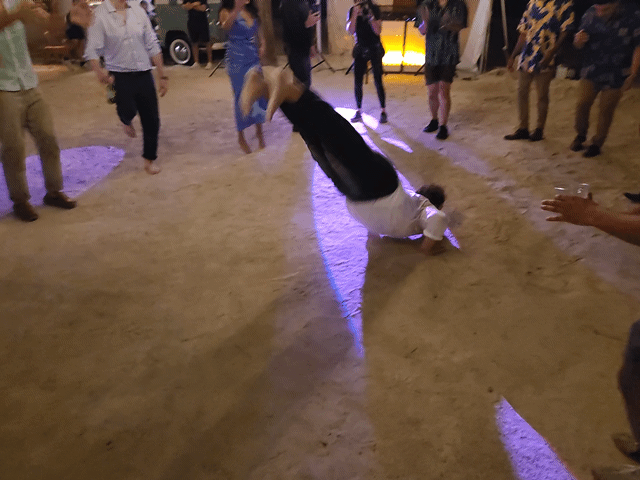 After cake and toasts the crowd moved out to the sand dancefloor and we were blown away by the dance moves of the youngest Torsilieri children Willow and especially Remy, who danced their little hearts out for hours. It was Ben, of The Last Bison fame, that stole the show when he broke out The Worm- he gave it his all and we were all suitably impressed (although he paid for it the next day, visibly stiff and limping his way into breakfast). Scott was relieved that there were no slow songs so he wasn’t forced to dance with me. We called it a night around 10 PM and headed back to our boat.