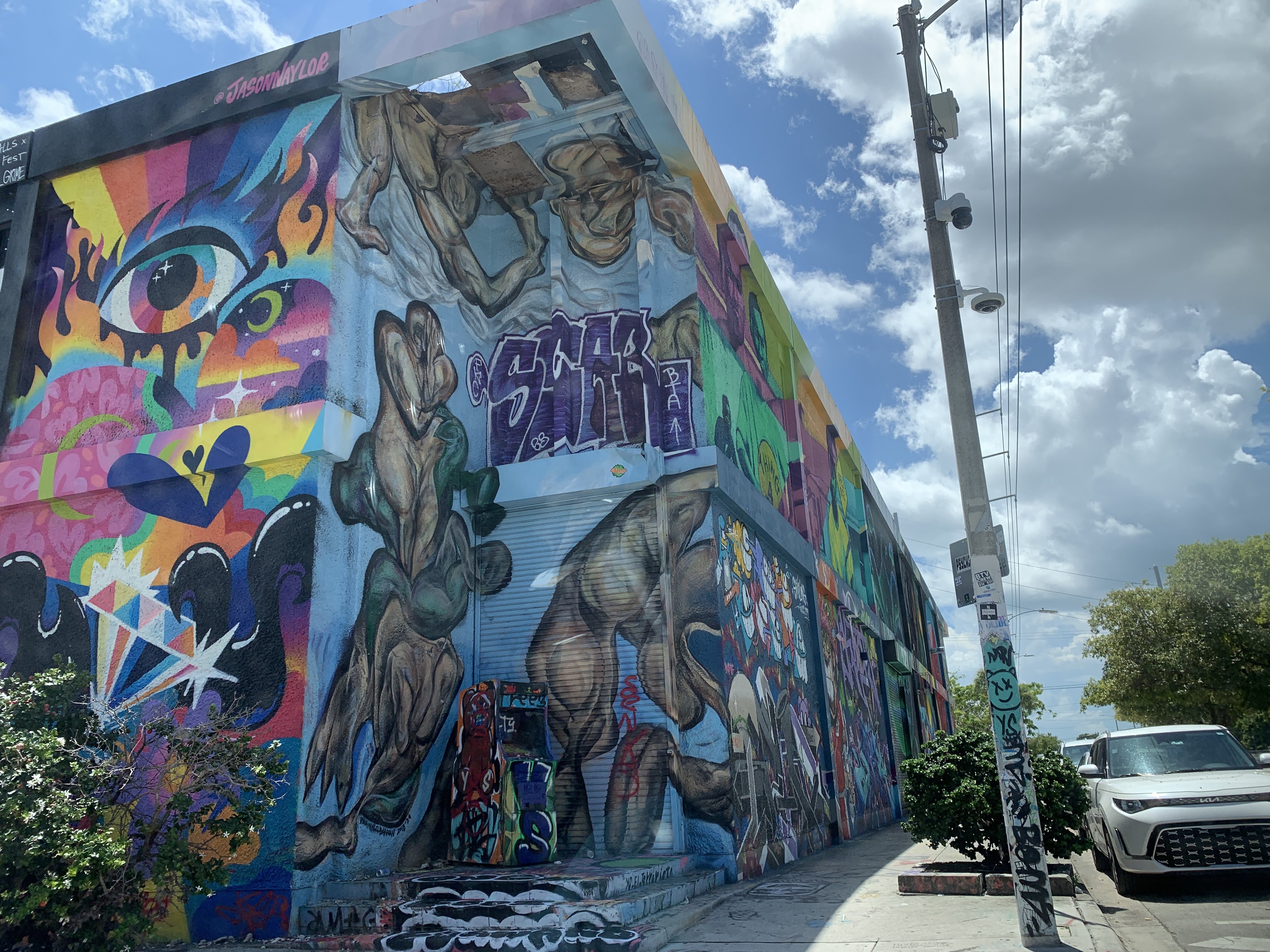 We hit the road and headed north into Miami for some sightseeing. Scott wanted me to see Wynwood Walls, a famous outdoor street-art and graffiti district downtown. We arrived about two hours later and it was already 95° with typical Florida humidity so rather than checking it out on foot, we just drove around to take it all in. Since it was a Sunday this wasn’t a bad plan since there was very little traffic. No doubt we didn’t get as rich an experience as we would have on foot, but we were exhausted and the thought of traipsing around in the heat was quite unappealing.