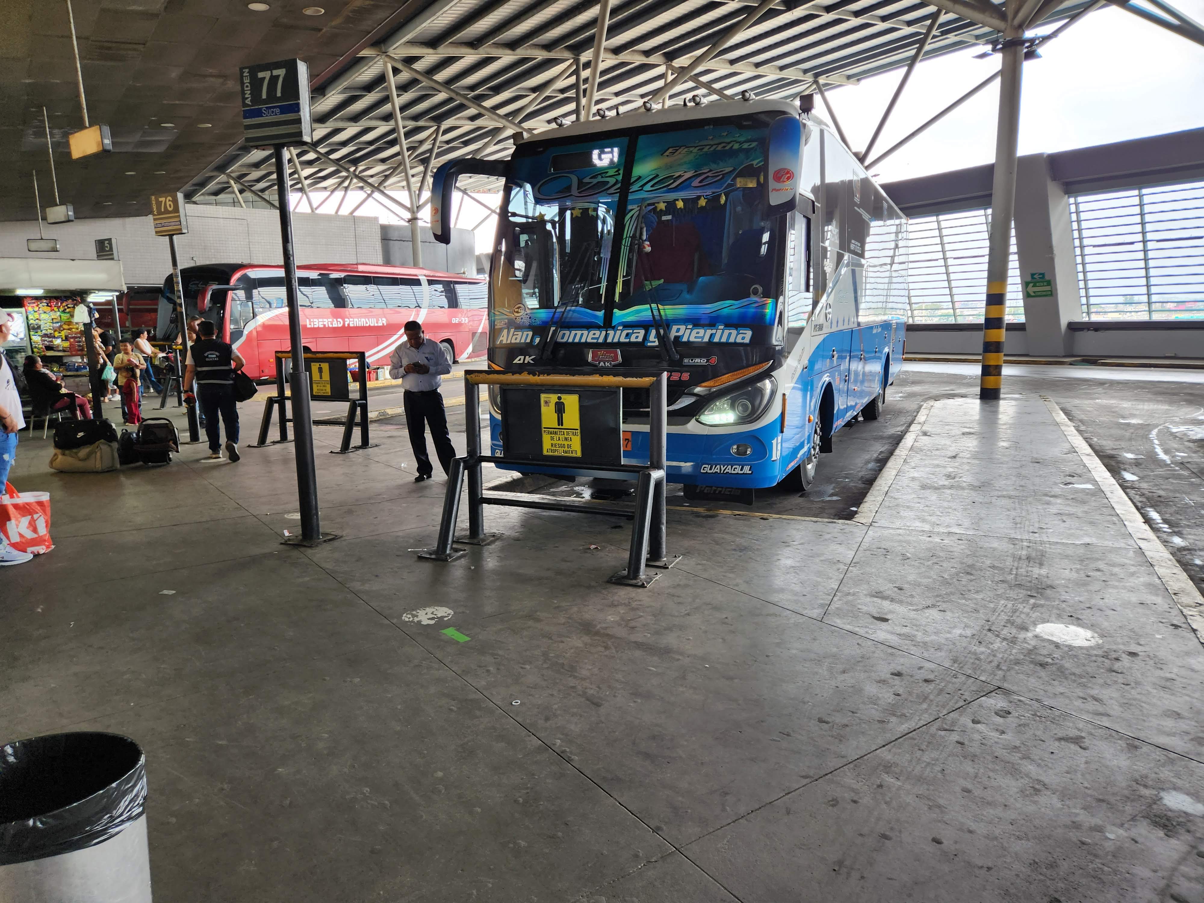 The bus line employee had made it sound like we needed to hustle to catch the bus, but it turned into a case of “hurry up and wait” instead, and we had to cool our heels for a bit in the exhaust-fume filled bus terminal while we kept our eyes peeled for our Jipijapa bus. Eventually it arrived and after handing off our luggage so that it could be stored in the hold below, we boarded and found our seats.