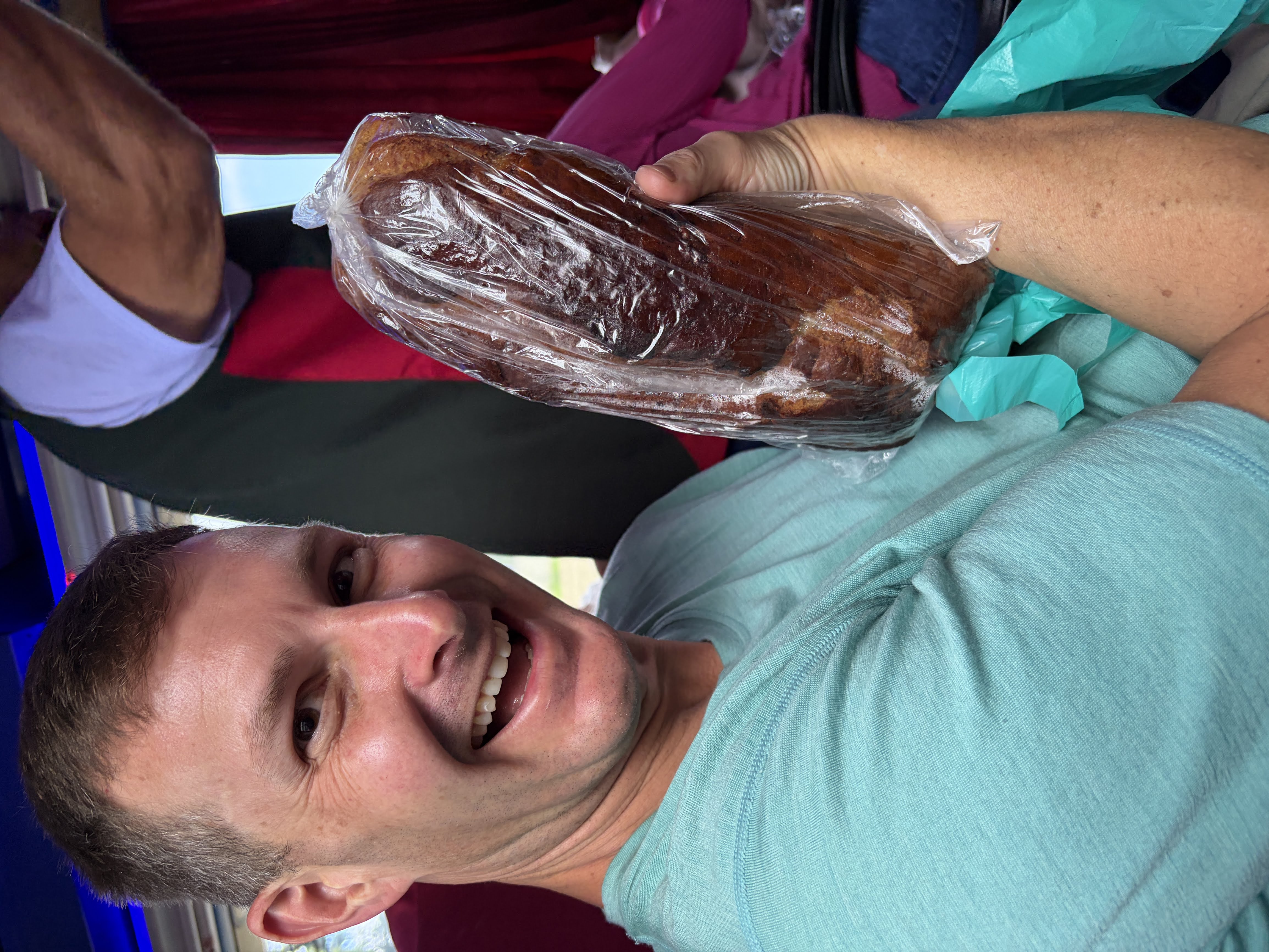 The only other remarkable thing about this bus ride was that at one point when a vendor boarded the bus peddling his banana bread, we said “yes” to his sales pitch for pan de banana and soon found ourselves the proud owners of a huge loaf for $3. It was delicious and we must have munched on it for 3-4 days, so it was well worth it. We kept referring to it as our “bus bread.”