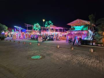 As we got closer into town the neon lights, noise level, and overall garishness increased and we were soon having to fend off overly enthusiastic restaurant barkers who energetically shoved their restaurant’s menu in our faces and spouted off the specials as we walked by. We would soon figure out that the tourism-dependent town was desperate for business since tourists were understandably staying away after the recent cartel shooting and retaliatory beheadings.